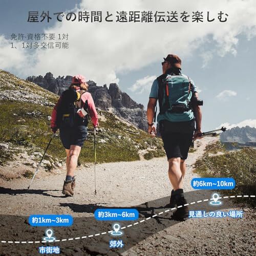 緊急対応: チャンネルを簡単に合わせるだけ使えます。いざという時(野外で踏み迷う地震火災など)には、通話相手に迅速に警報を出し、素早い連絡を助けます。