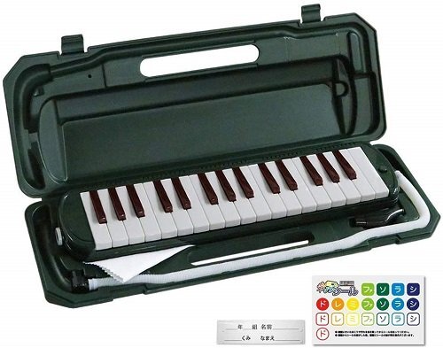 | KC キョーリツ 鍵盤ハーモニカ メロディピアノ 32鍵 モスグリーン P3001-32K/MGR (ドレミ表記シール・クロス・お名前シール付き) |