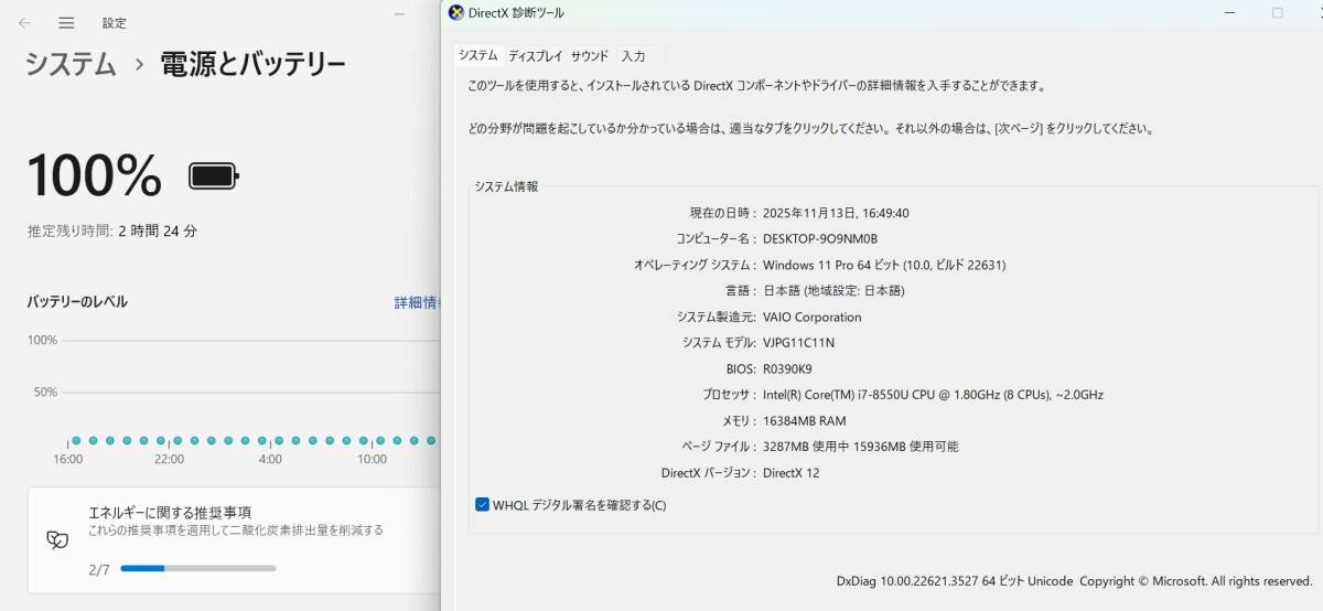 ★第8世代 i7搭載 Sony VAIO VJPG11C11N Core i7-8550U/メモリ16GB/SSD256 GB/1920x1080/Windows 11 Pro・30日間返品保証