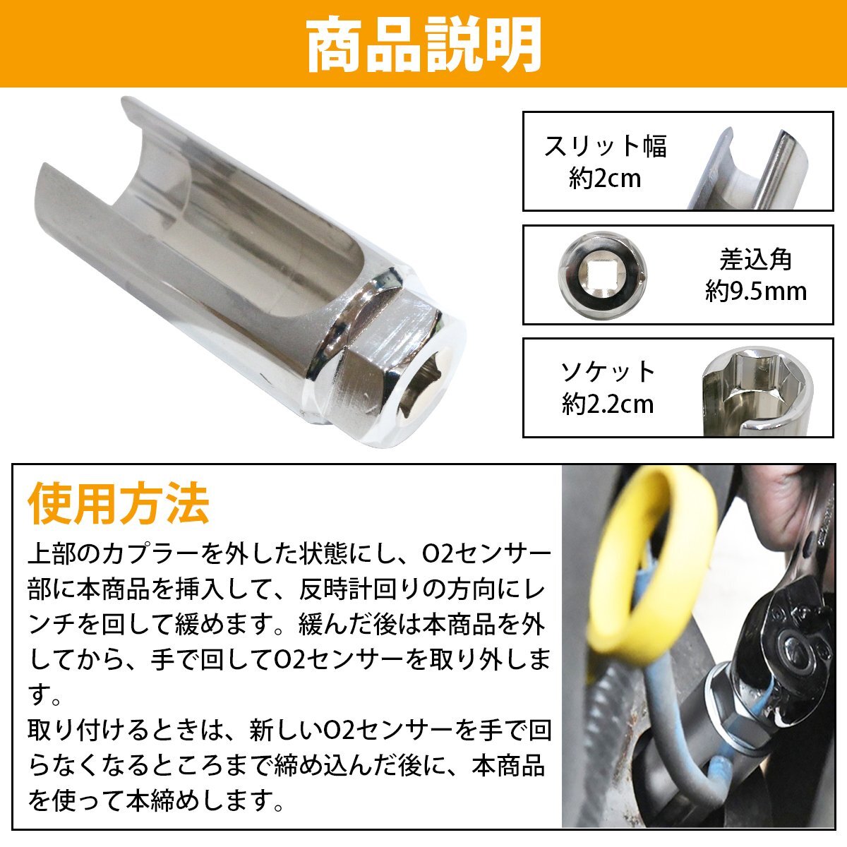 『差込角3/8(9.5mm) 』O2センサー ソケット 22mm 全長80mm オーツーセンサー レンチ 脱着工具 交換 触媒側 マフラー側 ラムダ
