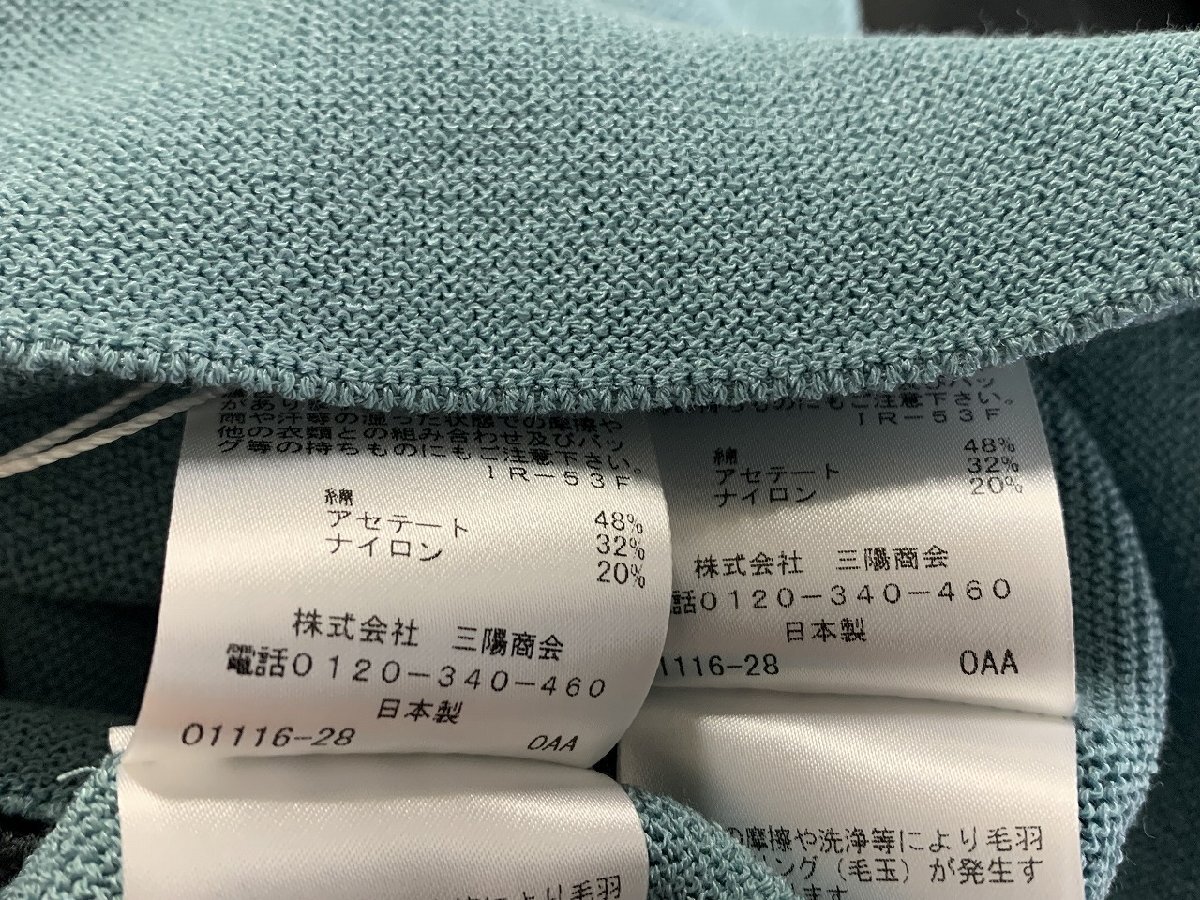 | 全体的にきれいな中古品で目立った汚れやダメージなどはありません。 ※ 状態は、弊社基準により表記をさせて頂いております。 ※ リユース商品の為、表示しきれないダメージなどある場合もございます。 ※ 実店舗業務の運営上、質問にお時間をいただく場合や主観的なご質問にはお答えできかねる場合がございます。 サイズ | | サイズ : 40 【身幅】 : 44cm 【着丈】 : 49cm 【ゆき丈】 : 72cm 【ウエスト】 : 32cm 【ヒップ】 : 51cm 【総丈】 : 68cm すべて平置きでの採寸となっております。 素人採寸ですので、ご参考程度にお願いします。 付属品 | ※ 出品商品はお写真に写るものが全てとなります。 | ※ ハンガー・スタンド等、備品を用いて撮影している場合がございますが、備品は付属いたしません。 店舗名 | 朝日店 | 発送について | ゆうパック、もしくは 佐川急便、ヤマト運輸(選択は出来ません) 元払のみの発送です。管理上その他の発送方法には、対応できません。お問い合わせは、ご遠慮願います。 | お支払いについて | 落札金額 + 消費税 + 送料 のお支払いとなります。 | 送料は送料欄にて、お届け先の都道府県をご選択頂き確認をお願い致します。 ※ 離島など別途追加が必要な場合もございます。 ※【お支払方法】銀行振込・代引きには対応しておりません。 同梱について | ※ 発送の拠点が複数ございます。同梱できない場合は個別配送となりますので、ご容赦下さい。 | ご落札の流れ | ヤフオク!ストアが出品した商品を落札した場合、個人が出品した場合とは取引方法が異なります。また、ストアとの取引では商品受け取り後の受け取り連絡は必要ありません。 | >> ヤフオク! リンクはコチラ ご注意事項 | お写真は撮影時の状態です。 | 店頭にて併売しているお品はコンディションが変わる場合もございます。 購入時に著しくコンディションが変わってしまっている場合はご連絡いただければ真摯に対応致します。 お色・状態に関しては、モニター環境や、太陽光・室内ライトなどの環境により、見え方が違う事もございますので、ご理解頂ければ幸いです。 中古品ですのでノークレームノーリターンでお願い致します。 材質タグがある場合は、写真撮影しておりますので そちらでご確認願います。 他店舗でも同時に販売しておりますので、売り切れの際は ご容赦頂ければ幸いです。 |