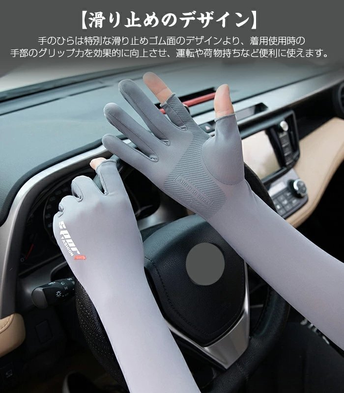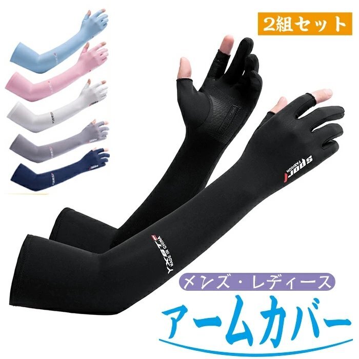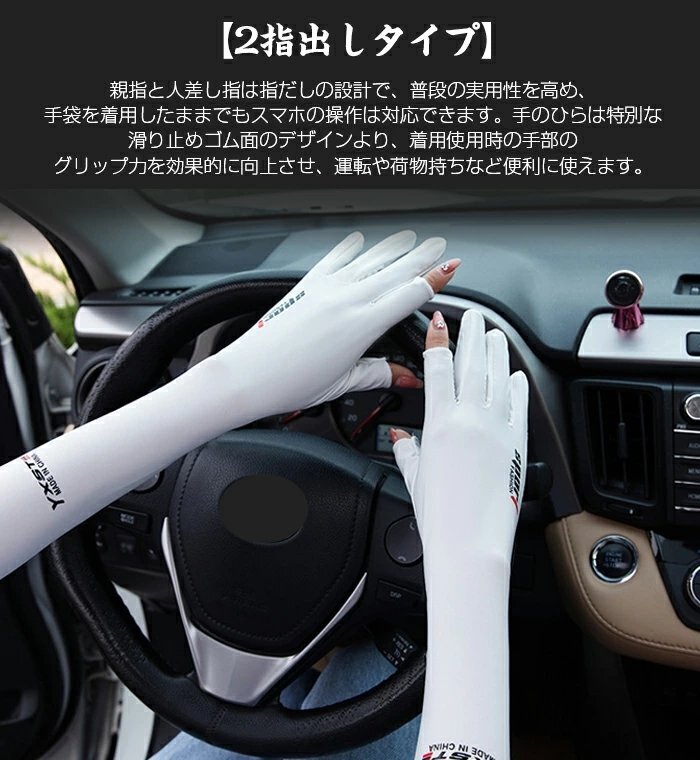 アームカバー グローブ 冷感 ひんやり 日焼け止め UVカット 手袋 夏用 ロング アームスリーブ ひんやり UVケア手袋2組セット☆6色選択/1点