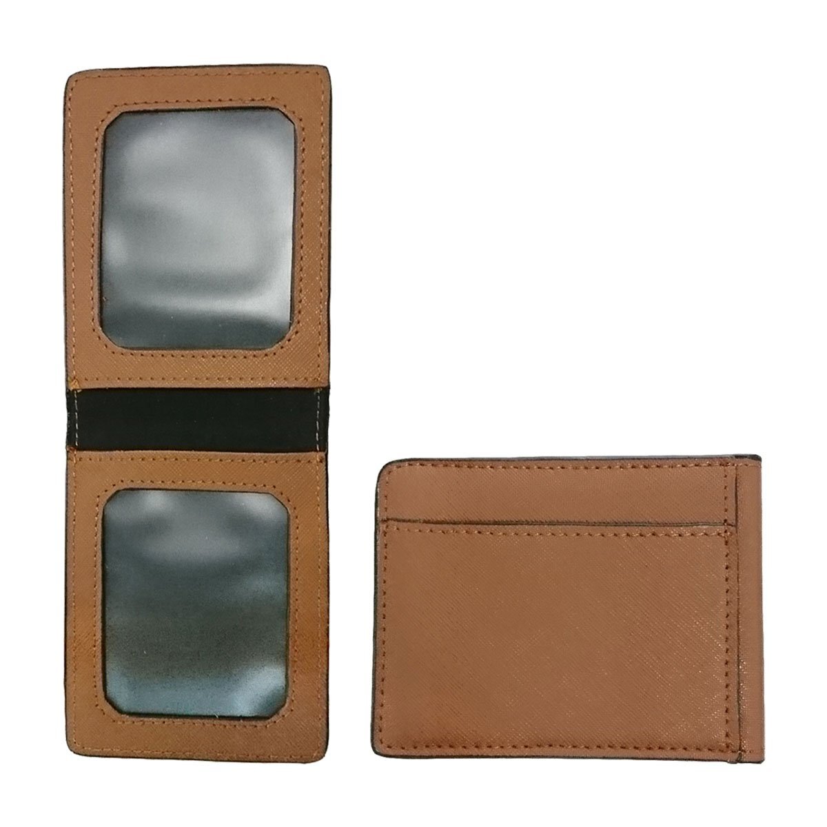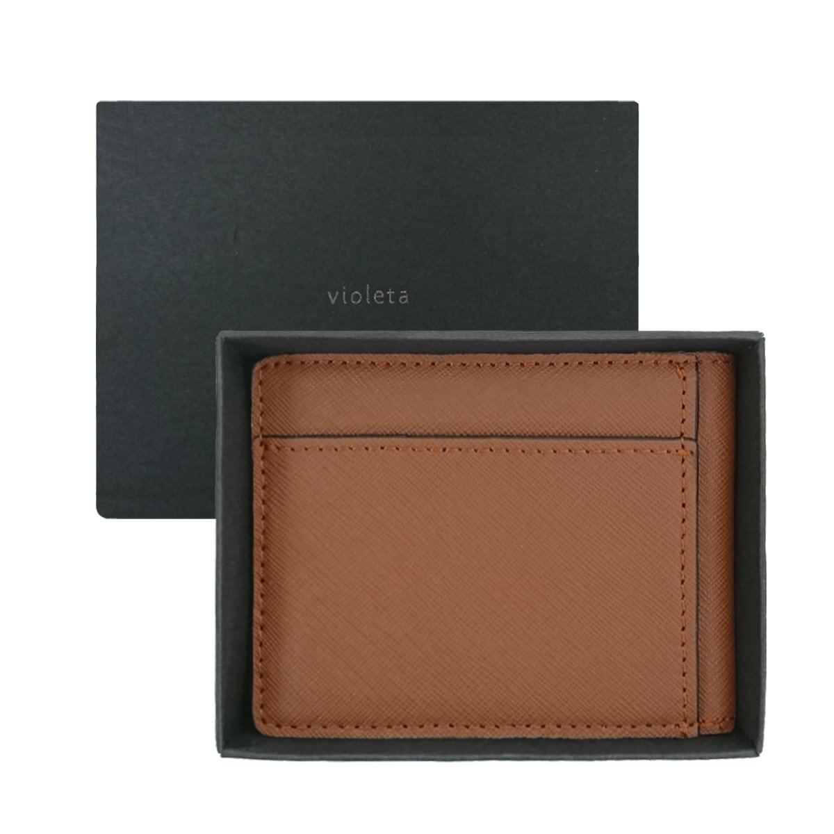【C10905】violeta 送料無料 本革 パスケース ブラウン 定期 免許証 IC カード ケース 入れ 二つ折り 2面 2枚