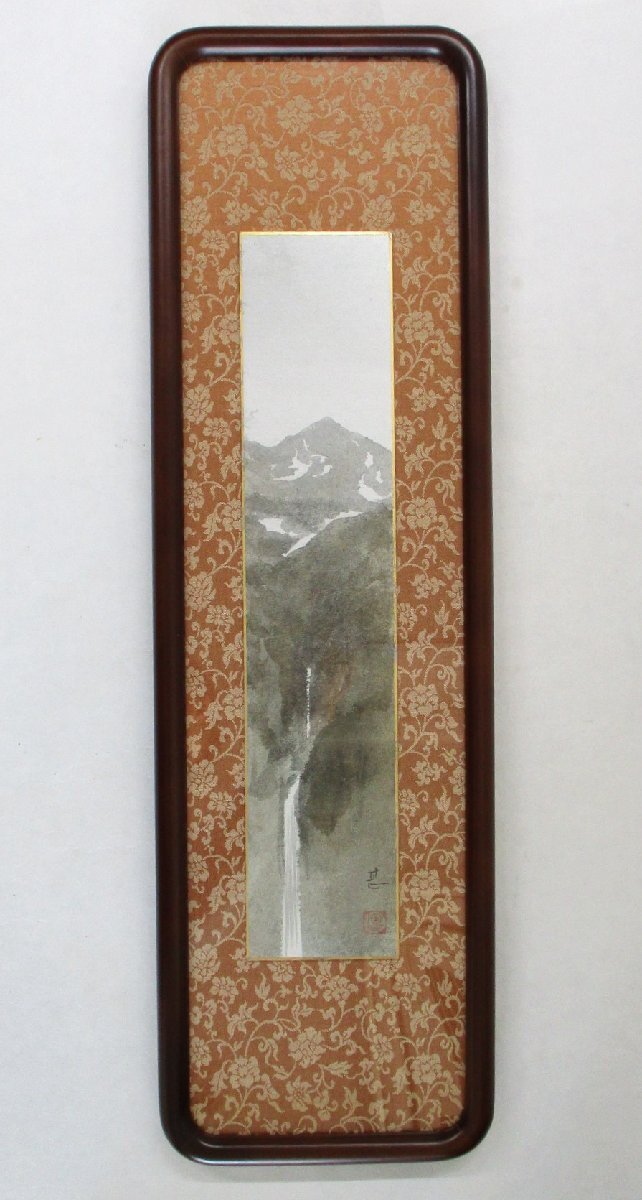 ★☆ 真作保証【 高越甚 作 短冊 山水画 サイン・落款有り 額付 】富山県出身 師;堂本印象 外務省お買上 ☆★