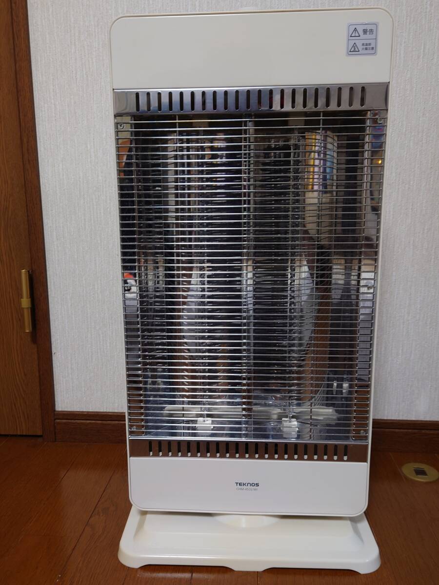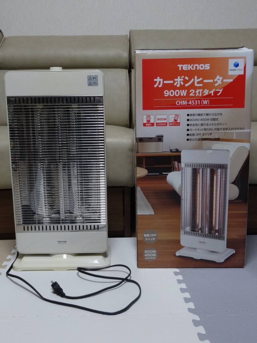 | TEKNOSカーボンヒーター900W2灯タイプ CHM-4531(W) ■商品の特徴 ・体の芯まで暖まって、ポカポカ持続!(ホワイト) ・首振り機能で暖かさ広がる ・ガードネット取り外し可能でお手入れラクラク ・転倒OFFスイッチ ■商品の仕様 ・商品サイズ(cm):幅約34×奥行約23.5×高さ約64.5 ・消費電力:900W/450W切替式 電源コード長さ:約1.9m ・首振り機能 ・転倒OFFスイッチ ・温度過昇防止装置 ・本体重量(kg):3.85 ■商品の状態 ・1シーズン使用して仕舞い込んでいたものです ・動作は確認済みです ・目立った傷は、ありません ・台座部分に若干、黄ばみがあります ・付属品については、本体と外箱です ・保証書並びに取り扱い説明書は、ありません |