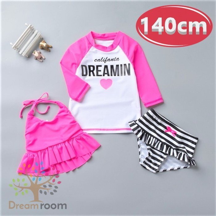 kids 3点セット フリルボーダースカート ビキニ+ラッシュガード セットアップ女の子 【150cm】 K-241 スイムウェアー