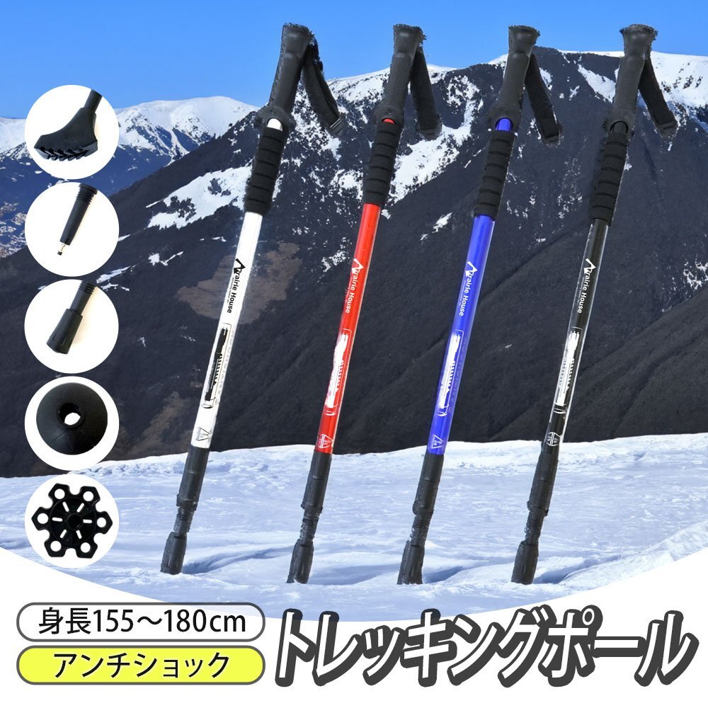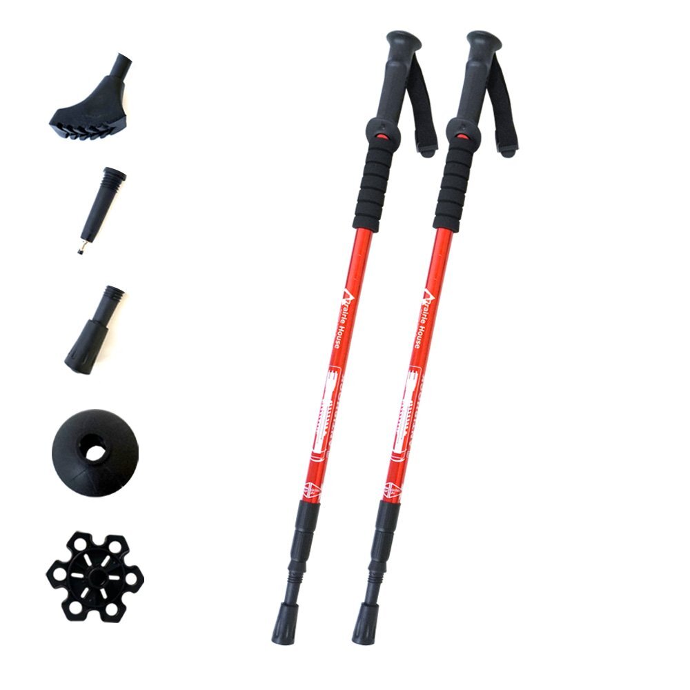 Prairie House トレッキングポール アンチショック 2本セット アルミ合金 軽量 伸縮式 収納袋 登山 ハイキング アウトドア レッド XO847R
