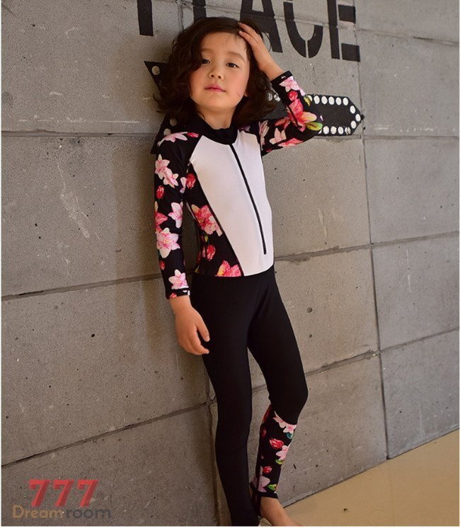 kids 2点セット フラワー 花柄 ホワイト ラッシュガード+海水パンツ セットアップ男女兼用 【120cm】 K-244 スイムウェアー
