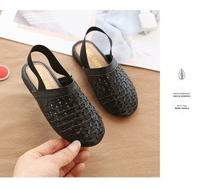 summer メッシュ編み込み スリッポン 【ブラック 22cm】 韓国子供服 キッズ ビーチサンダル 子供用 女の子