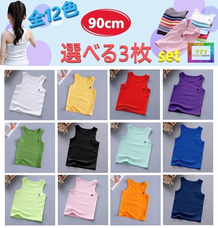 1スタ☆kids 全12色 選べる 3枚☆【90cm】Dog ワンポイント タンクトップ K-278 ノースリーブ 子供 インナー 下着 シャツ