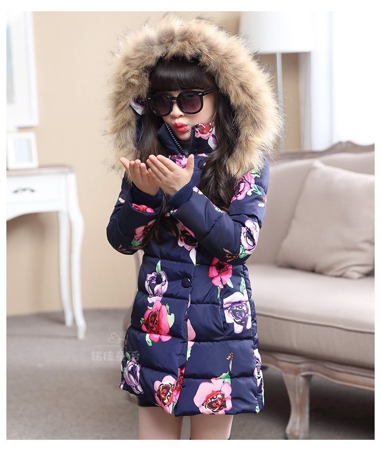 【160cm】 ダウンコート 花柄 フラワー ピンク 子供服 アウター 女の子 中綿 ロングコート 韓国子供服