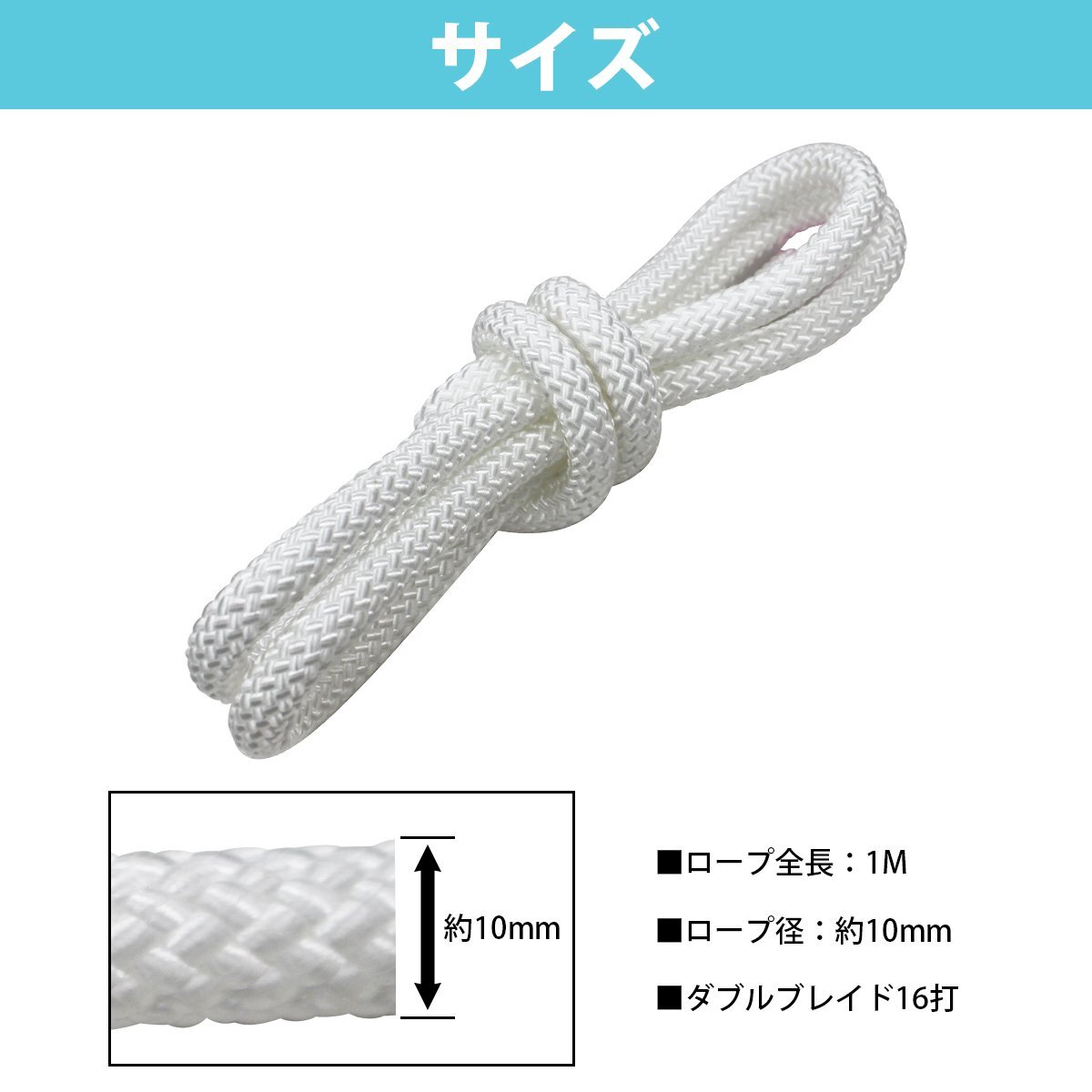 1m ~ 切り売り 16打 10mm 係留ロープ フェンダーロープ ダブルブレイド 白/ホワイト マリンロープ 船 係船 ロープ 10ミリ