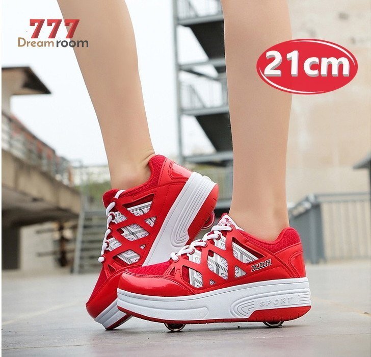 光る☆LED ライトアップスニーカー&ローラーシューズ 一体型 【K-161レッド 21cm】夜間 スケート靴 反射材 ジョギング 自転車