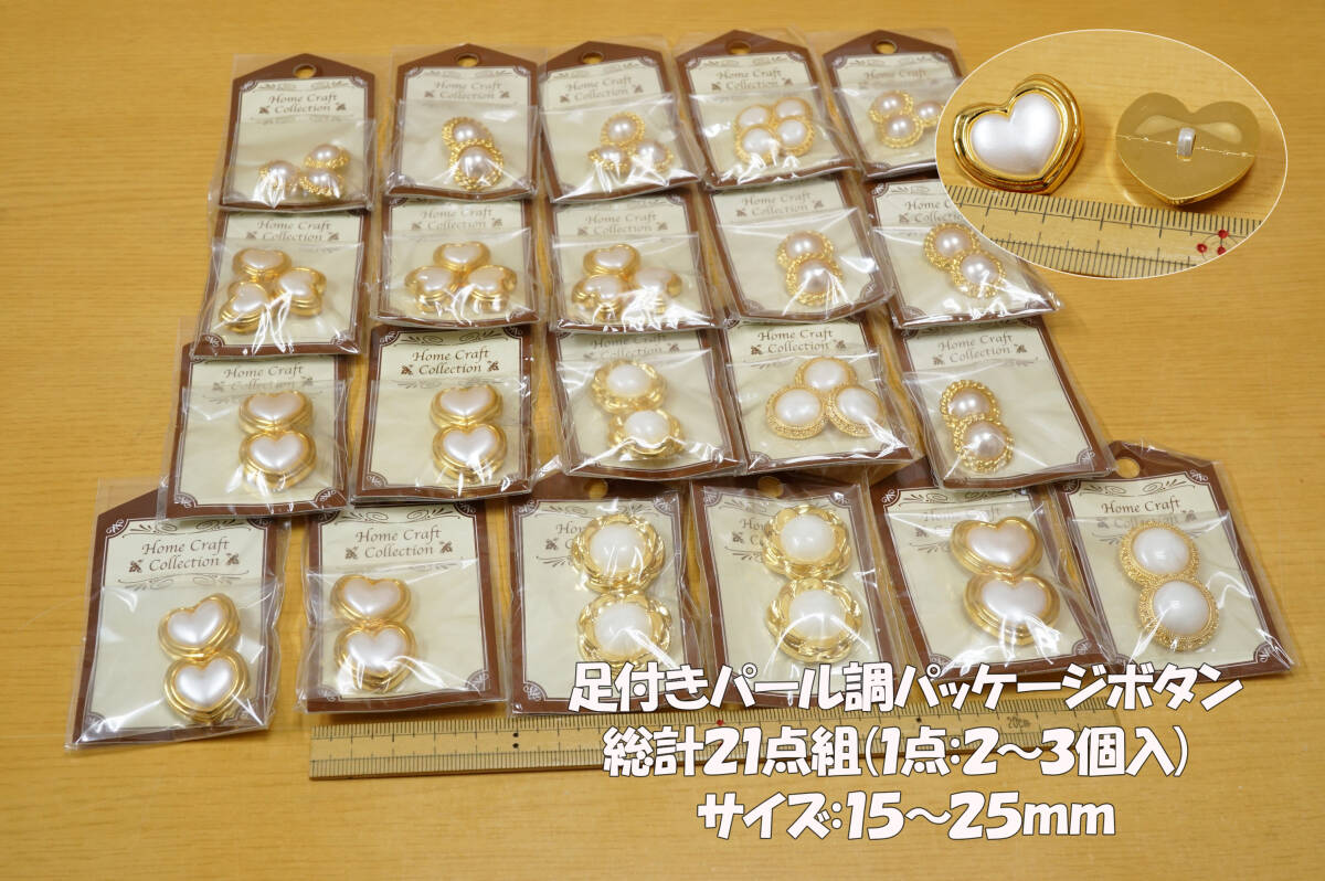 足付きタイプのパール調パッケージボタン、総計21点組(1点:2~3個)での出品でございます。