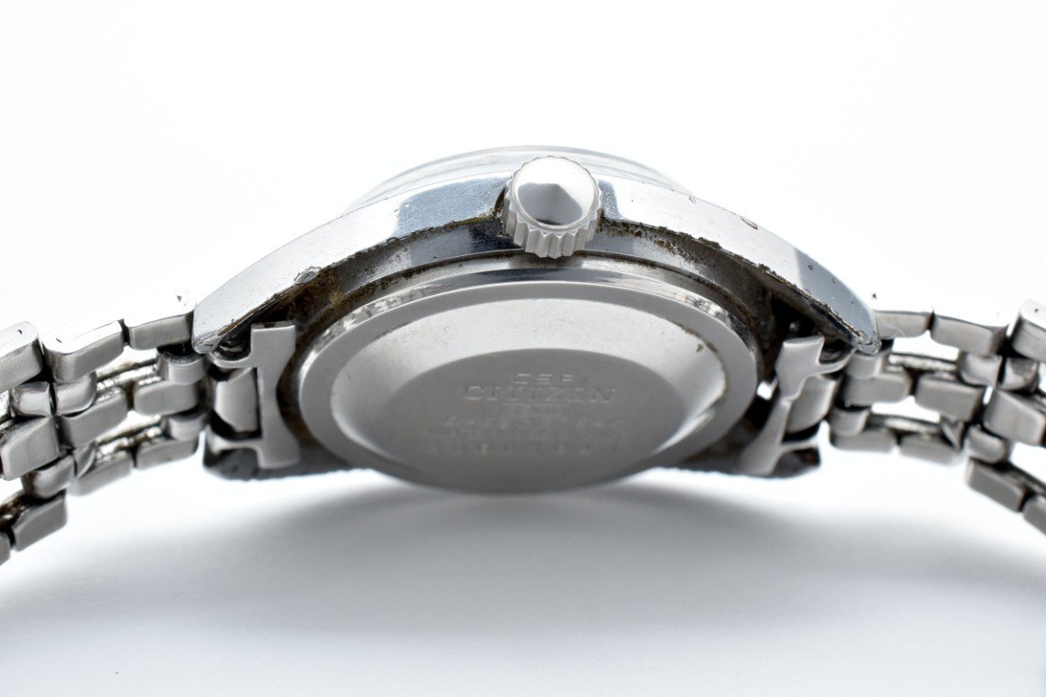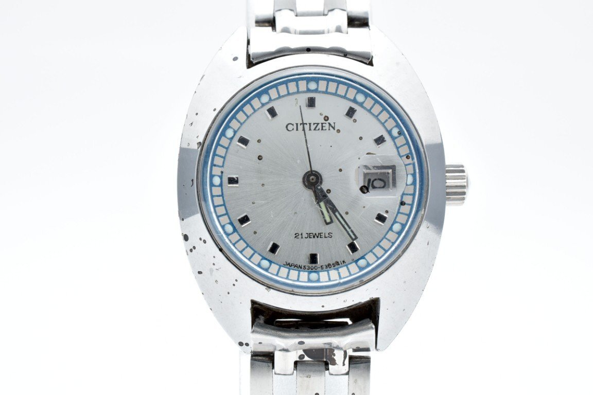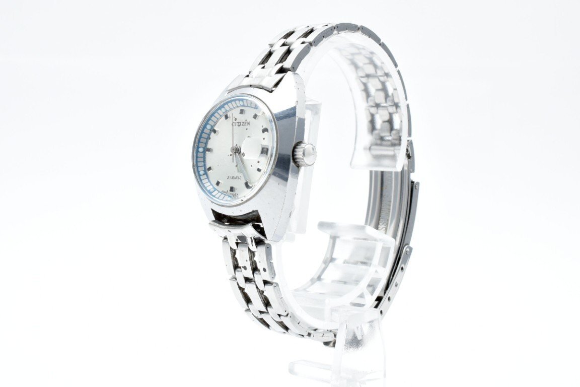 稼動品 CITIZEN シチズン 4-530675-K シルバー ラウンド 銀文字盤 3針 デイト レディース 腕時計 手巻き 21JEWELS