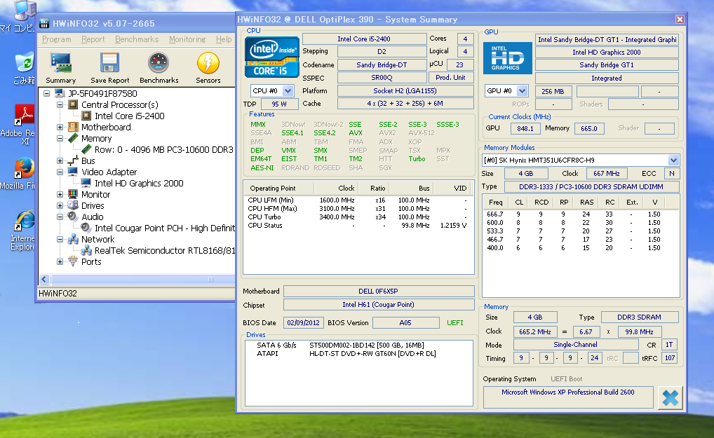 | CPU | Intel Core i5-2400 (6MCache/3.10GHz/4コア/TDP95W) |