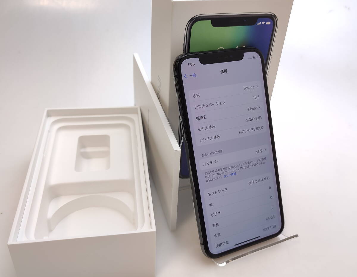 訳あり iPhoneX 64GB グレー SIMロック解除済み ◯判定 バッテリー75%