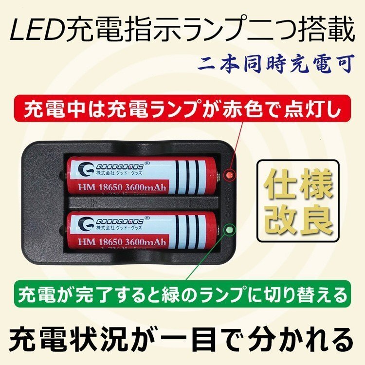 | ●18650型充電池専用充電器 ●仕様改良! 指示ランプ2つ搭載!それぞれの充電状況が一目瞭然! 充電方法は簡単!アダプタを接続後、家庭用コンセントに挿して電池をセットするだけ! 充電中:赤ランプ点灯 充電完了:緑ランプ点灯 充電状況が確認でき、より安全に充電する事が可能です。 (※充電時間は、電池容量や使用期間・回数などによって異なります。) ●2本独立充電 同時充電可 2本充電池同時に充電可能、急速充電に対応! ●多種保護機能付き、安全充電実現 短絡(ショート)防止機能・過電流保護機能・過電圧保護機能・電池起動機能・過熱保護機能が搭載され、安全にご利用頂けます. ●PSE認証済み 国内安全認証の電気用品PSEマークを取得しています。安心安全に使用できます。 |