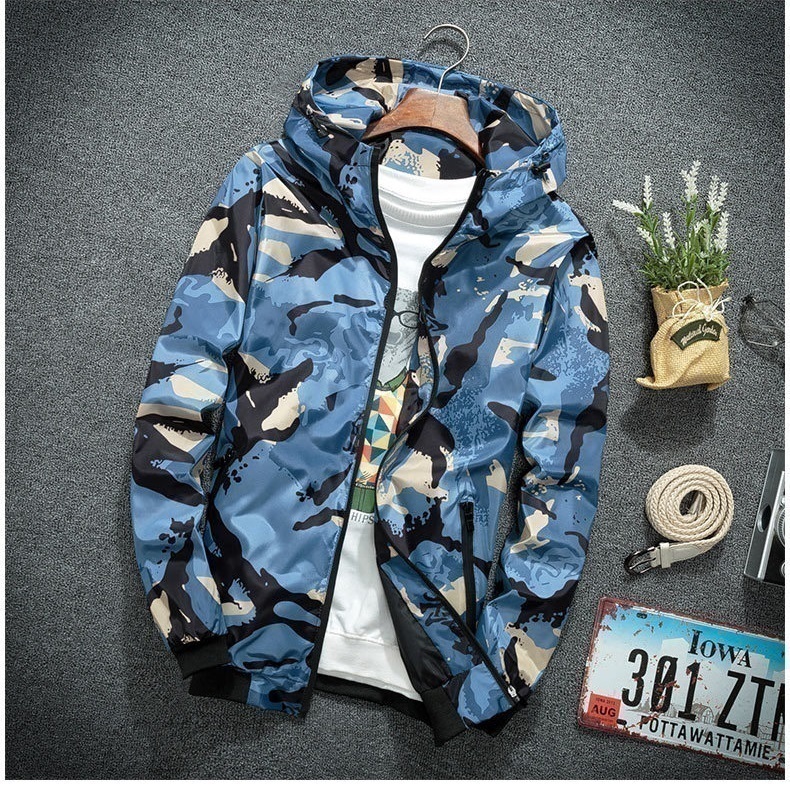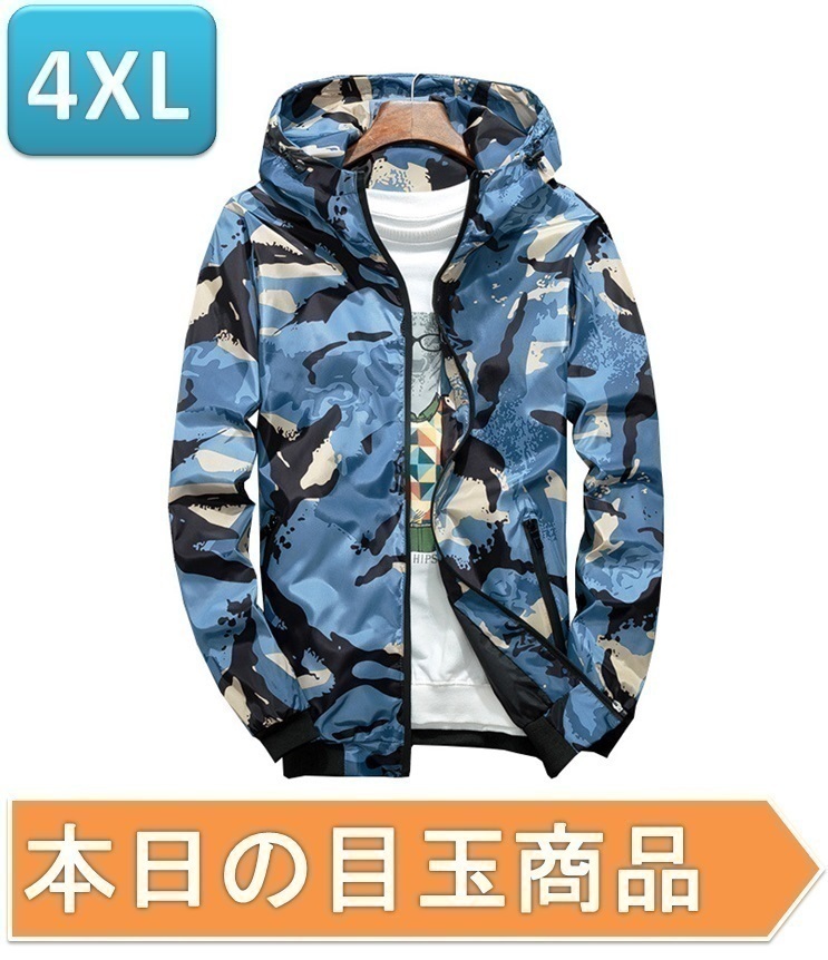 ☆1スタ 【191】 迷彩 ウィンドブレーカー フード付き 青迷彩 4XL メンズ ナイロン カモフラ 柄 アウトドア 防風 軽量 ジャケット