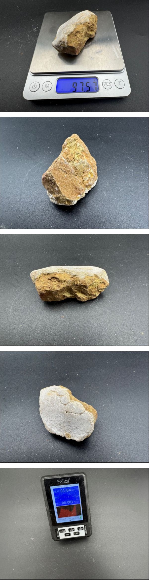| 【希少】台湾北投石 97g 北投石 台北北投石 北投温泉 ラジウム温泉 玉川温泉 大変貴重な鉱石です。 下記ウィキペディアより、 出典: フリー百科事典『ウィキペディア(Wikipedia)』 北投石(北投温泉産出)。国立台湾博物館収蔵 北投石(玉川温泉産出)。秋田大学附属鉱業博物館収蔵 北投石(ほくとうせき、英語: hokutolite)は北投温泉で発見された鉱物で、学術的には独立種とはいえず「含鉛重晶石」と呼ばれ重晶石の亜種として扱われる。世界でも台湾台北市北投区の北投温泉と日本秋田県の玉川温泉[注釈 1]からしか産出しない。 1905年(明治38年)に地質学者岡本要八郎が台北州七星郡北投街の瀧乃湯で入浴した帰りに付近の川で発見した。その後、この鉱物がラジウム等を含み放射性を持つ北投温泉独特の鉱物(後に玉川温泉で産出する物も同じ物であると認定された)であるとされた。1913年(大正2年)に東京帝大の鉱物学者神保小虎によって命名され、1933年(昭和8年)に台湾総督府によって天然記念物に指定された。 玉川温泉産出のものは神保小虎によって北投石と同じものであると認定される以前は澁黑石と呼ばれていた[2]。菅沼市蔵は、玉川温泉産の北投石を区別するため、「秋田北投石」、"Akita Hokutolite" と表記している。 台湾(中華民国)でも、2000年に「自然文化景觀」に指定されている。 北投石の組成は (Ba,Pb)SO4 で、およそBa:Pb=4:1の割合で含まれる。放射性のラジウムを大量に含む温泉沈殿物重晶石(硫酸バリウム)である。 岡本が北投石を発見してから100年目にあたる 2005年に、台北市において北投石発見100年を記念する国際会議が開催され、日本から30人以上が参加した[5]。 北投石の成分分析 1908年3月、東京帝国大学理学部(当時は東京帝国大学理科大学と呼ばれた)の垪和為昌は神保小虎教授から北投石の成分分析を依頼された。この分析を当時化学科の1年生だった飯盛里安、柿内三郎、靑木芳彦の3名の学生に命じた。この際、垪和はこの鉱物にウランを含んでいないか綿密に調査するように指示を与えた[6]。飯盛によると、ラジウムを含む鉱物に通常含まれる親核種のウランが検出されなかった。方法を変えて再三再四試みたが、それでもウランは検出されなかった。これについて垪和は「この鉱物は水成鉱物であるからラジウムだけが偶然ウランから離れて沈積したものであろう」と見解を述べた[7]。斎藤信房はこれは今日から見ても卓見であろう、と述べている[8]。この分析値は日本鉱物誌第二版に掲載された。飯盛はこの分析によって放射化学に興味を持ち、以後放射化学への道に進むことになった[7]。 北投石中のラジウム含有量は1929年に吉村恂が測定した。結果は北投温泉産のものは1.73×10-7% 玉川温泉産のものは1.22×10-7% であった[9]。飯盛によると、この鉱物が放射平衡にあるウラン鉱物であると仮定すると北投温泉産のものはウランをUO3として約0.61%[注釈 2]含むはずであり、平衡に達していなければさらに多くのウランを含むはずなので、化学分析で十分に検出可能である。しかるに垪和の予想に反してウランが検出されなかったので、垪和は慎重を期して3人の学生に分析を命じてその平均値を採用し、日本鉱物誌に掲載した[7]。下表は日本鉱物誌第2版 (1916年) に掲載された飯盛らによる北投石(北投温泉産)の分析結果[11]。この分析結果は、のちの研究者たちに高く評価されている | ||