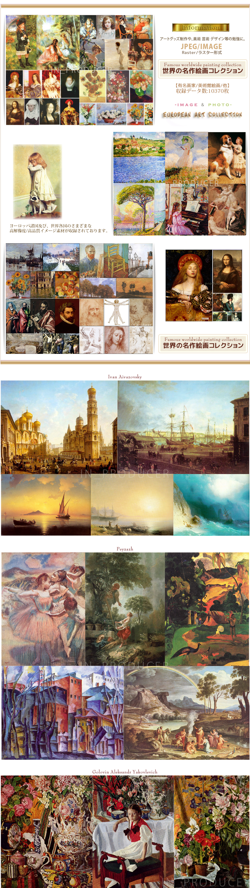 | ◇ 著 名 画 家 ア | ト 作品素 材 集 ◇ | 世 界 の 名 作 絵 画 コ レ ク シ ョ ン | ANTIQUE MATERIAL | ||||