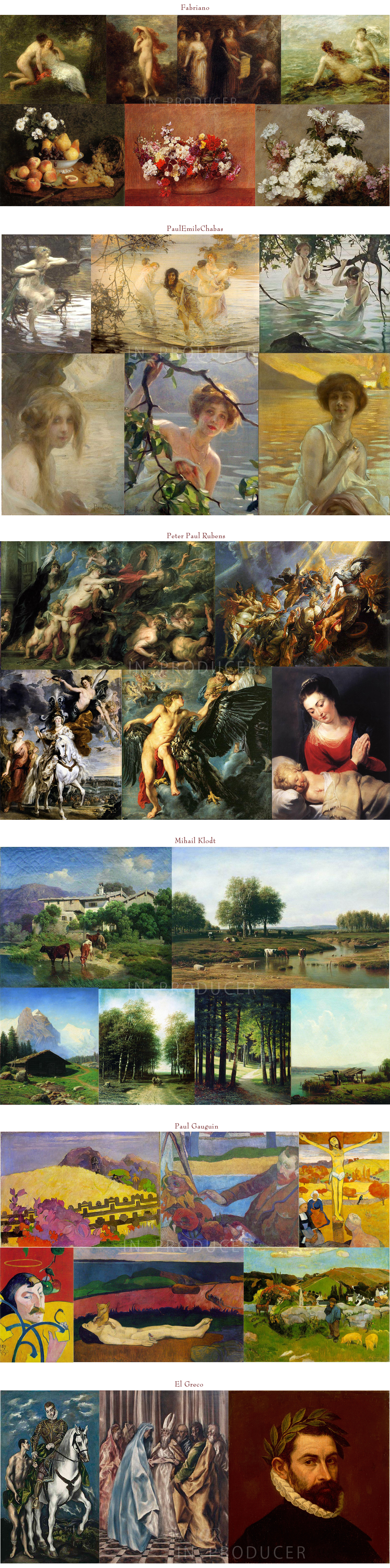 | Max Liebermann Michelangelo Mihail Klodt Parmigianino Paul Gauguin PaulEmileChabas Peter Paul Rubens Peyzazh Pierre Auguste Renoir | Rossetti Dante Gabriel Rosso Fiorentino SeaCharts Van Gogh Vermeer Johannes Vittore Karpachcho Zhak-Lui-David |