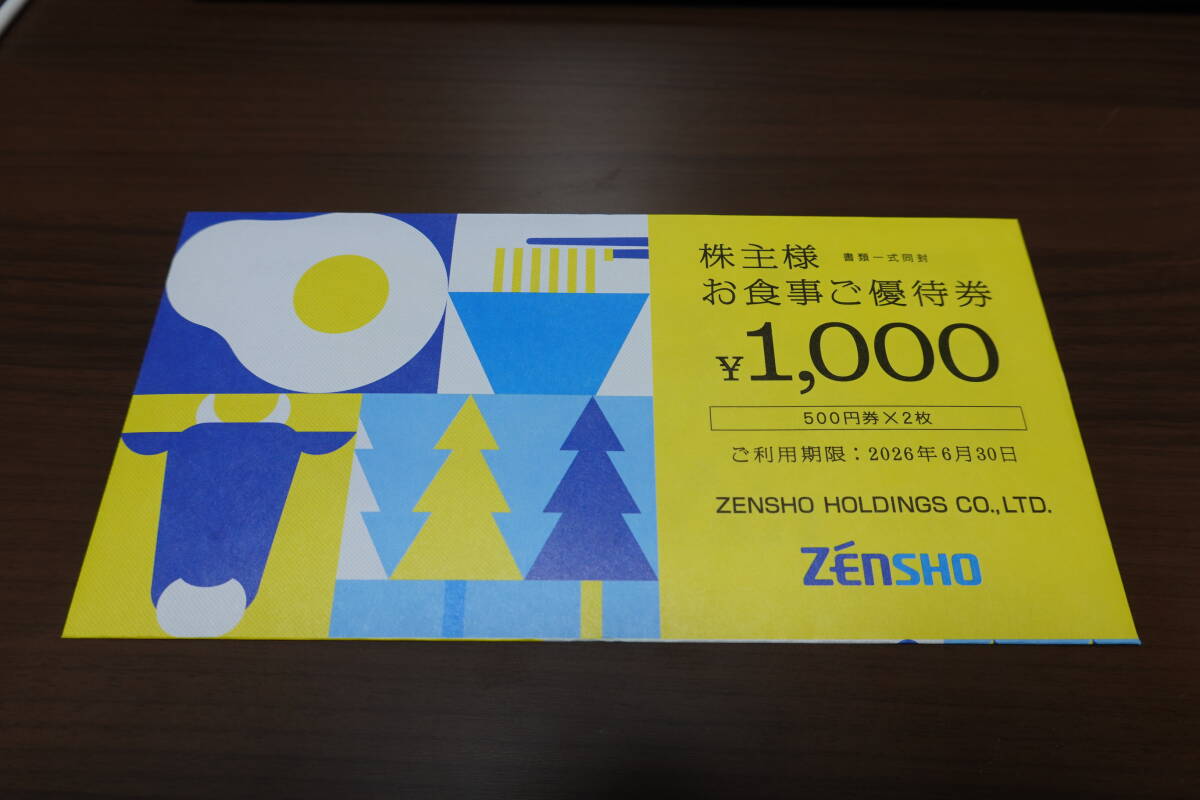おまけとして、ゼンショーの株主優待券 500円2枚(1000円分)有効期限 2026年06月30日