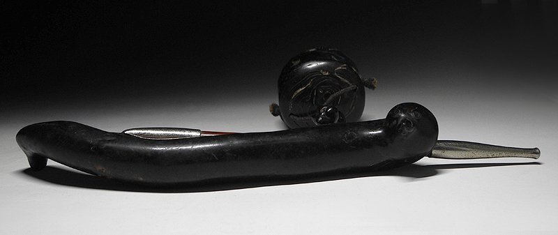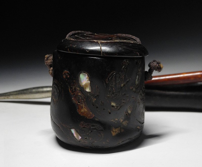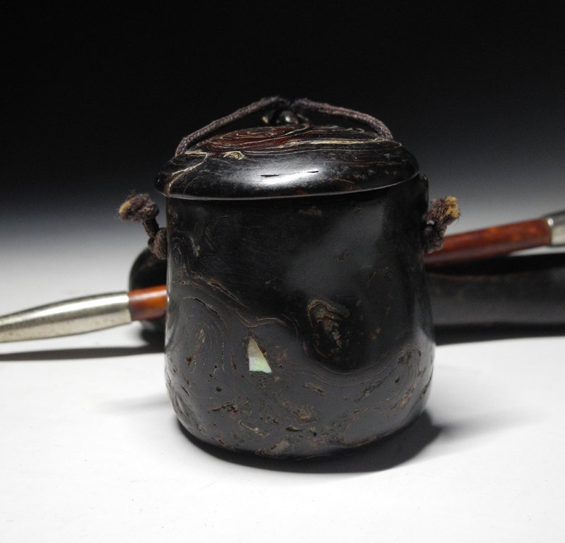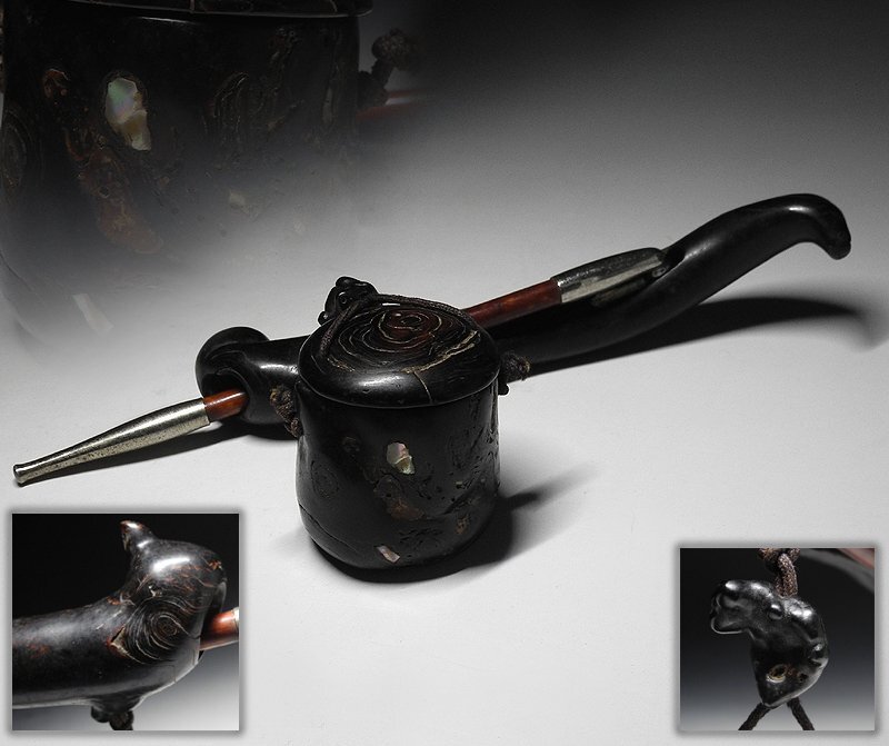 煙草入 幅約5cm 高約6.5cm 奥行約5cm 根付 幅約2.5cm 高約2cm 奥行約2cm 煙管入 幅約19.5cm × 約5.5cm × 約3.5cm |