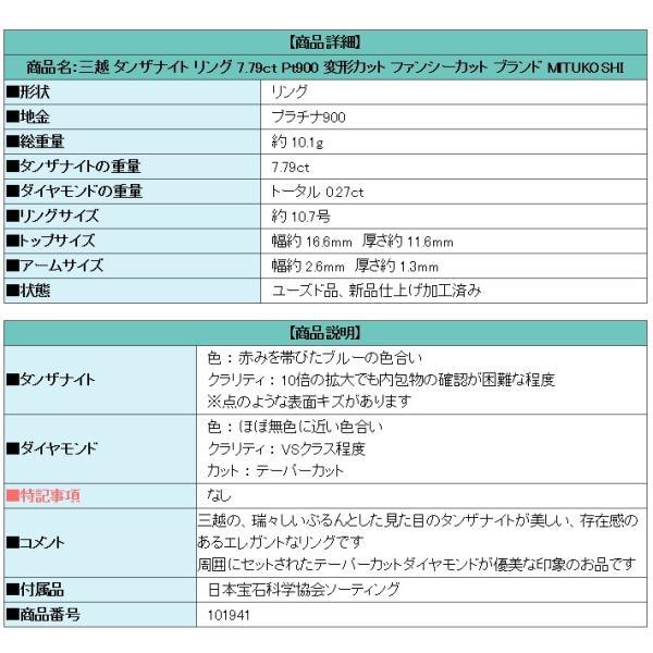 | 商品名:三越 タンザナイト リング 7.79ct Pt900 変形カット ファンシーカット ブランド MITUKOSHI | |