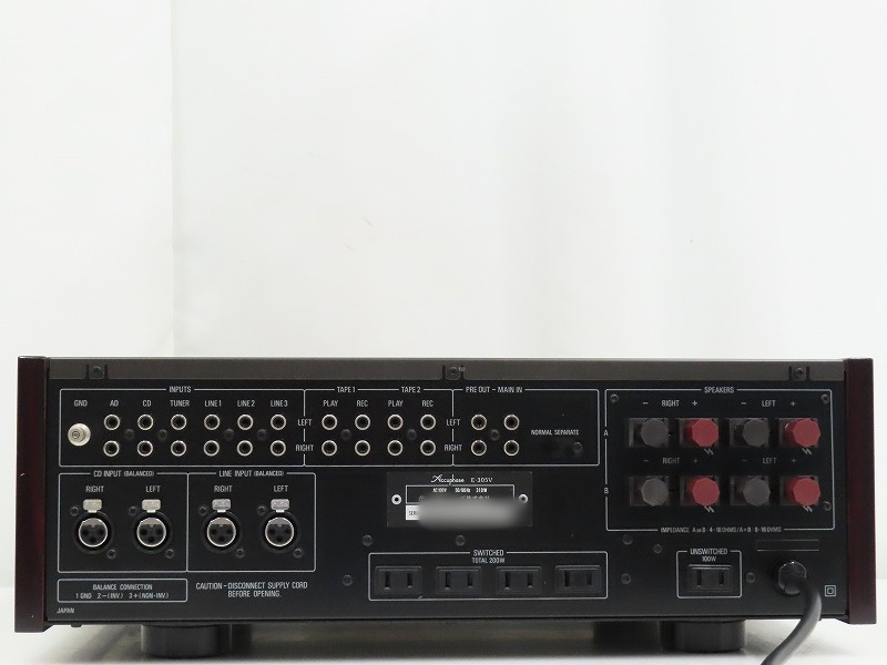 ■メーカー : Accuphase ■型番 : E-305V ■外径寸法 : W475×H170×D418mm ■重量 : 22.7kg 【商品の状態 当店での確認内容】 電源は入りますが動作しません。 ※上記により【ジャンク商品】としての出品となります。 「商品の状態」に関しましては当方主観の目安となります。外観などは中古品で個人差もありますので詳細は画像にてご判断ください。 画像にて不明な点はご質問下さい。 出品商品は画像のものですべてになります。画像に写っているもの以外は付属いたしません。 ※注意※ ヤフオクのシステム上、送料表記が送料未定となっておりますが、送料に関しては全て有償となりますので下記を参照下さい。 【送料 全国一律 2,980 円 沖縄、離島は別途お見積り】 ※送料がお得になるサービスです(下取りシステムのご案内です) ストア決済利用時にクレジットカードやPayPay残高/PayPayクレジットを利用の方は留意点がございますのでこちらを参照上ご利用ください。 当ストアでは商品を安全にお届け出来るよう提携運送会社と協議の上、発泡緩衝材や強度段ボールの使用等 運送会社が指定する梱包方法や資材を採用しております。 より安全にお届け出来るよう商品仕様により梱包サイズが大きくなる場合や個口数が増える事がございます。 【当ストアオークションルールを入札前に必ずご確認ください。】 【落札後の取引手順】 ・落札後は取引ナビにて、必要事項をご入力後、送信ください。 取引終了後48時間(土、日は除く)以内に入力をお願い致します。 ※ご連絡が頂けない場合は落札者様都合でのキャンセルとさせていただきます。 ・落札代金(商品代金+消費税+送料)の入金をお願い致します。 ※大型商品の場合は送料確定後の決済となる為取引ナビを入力頂き、当ストアより送料のご案内が来るまでお待ちください。(土曜、日曜、祝日の場合は翌営業日より順次ご案内いたします) ・お支払い方法はクレジットカード/PayPay残高/PayPayクレジット/PayPay銀行/ゆうちょ銀行のみです。 ※商品代金引換(代引き)のお取り扱いはしておりません。 ※領収証の発行が必要な方はご連絡ください。 ※銀行振込の際の振込手数料はご負担願います。 ・入金確認後に出荷手配を致します。 (原則入金確認後3営業日以内に発送いたしますが、大型や重量のある製品はお時間をいただく場合もございます。) ・発送は当店指定の運送会社の元払いのみでの発送となります。 ※他の運送会社、送料代引き等は致しかねます。 ※落札者様ご自身での運送会社の手配いただく事も可能ですが荷物事故の責任の所在の問題上、梱包は致しかねます。 ※店頭にお越し頂き手渡しも可能(福岡市早良区)です。ご希望の方はご落札後にご連絡下さい。 ・大型/重量物商品の送料につきましては商品の特性上、荷降ろし状況等により送料が大きく前後し運送業者に別途見積りが必要な為、早めのお問い合わせにてお見積り上、入札をお願い致します。 【初期不良の保証について】 ・商品到着後の初期動作不良、また配送中の事故による破損、不具合が有る場合は、商品発送後10日以内に当ストアまでご連絡ください。当ストアでは修理での対応を優先させて頂きますが、修理不可の場合は全額返金させて頂きます。 (商品代金+消費税+送料のお支払い頂いた金額となります) 【初期不良の保証の対象外について】 次の場合は保証の対象外となりますのご留意ください ・ジャンク商品、現状商品、難あり商品での出品商品。 ※難あり商品に関しましては動作確認時に一部動作不良が確認された商品になり、記載している動作確認以外にも、動作不良がある可能性もございます。こちらに関しましても保証対象外となりますことをご理解ください。 ・年代物のオーディオなどで、当店にてわからない範囲で部品が交換されている場合 ・楽器類の特殊機材(マイクロスコープ等)での確認までは行っておりません。気になる方は事前にご質問いただくか、入札をお控えください。 ※初期不良に関しましては【商品の状態】に記載のもの、またそれによって起因する動作不良は対象外です。 ※商品発送後10日を過ぎてのご連絡は対応が出来ませんので、商品が到着しましたらお早めに確認をお願い致します。 【メーカー保証の加入・継承】 ・未使用品、展示品やメーカー保証期間が残っている商品に関しまして、メーカー保証の加入、継承が必要な方は、落札後取引ナビ内にて当ストアにお知らせください。商品発送までにご連絡いただけない場合、メーカー保証の手続きを承れない場合があります。 【評価について】 ・評価不要の場合、必ず取引ナビの「要望欄」にてお知らせください。それ以外でご連絡をいただいた場合、対応できない可能性がございます。一度行った評価はシステム上取り消しが行えませんのでご了承ください。 【入札削除・キャンセルについて】 ・入札後はトラブル防止の為いかなる事情がおきましても入札を削除等は致しておりません。 ご検討の上入