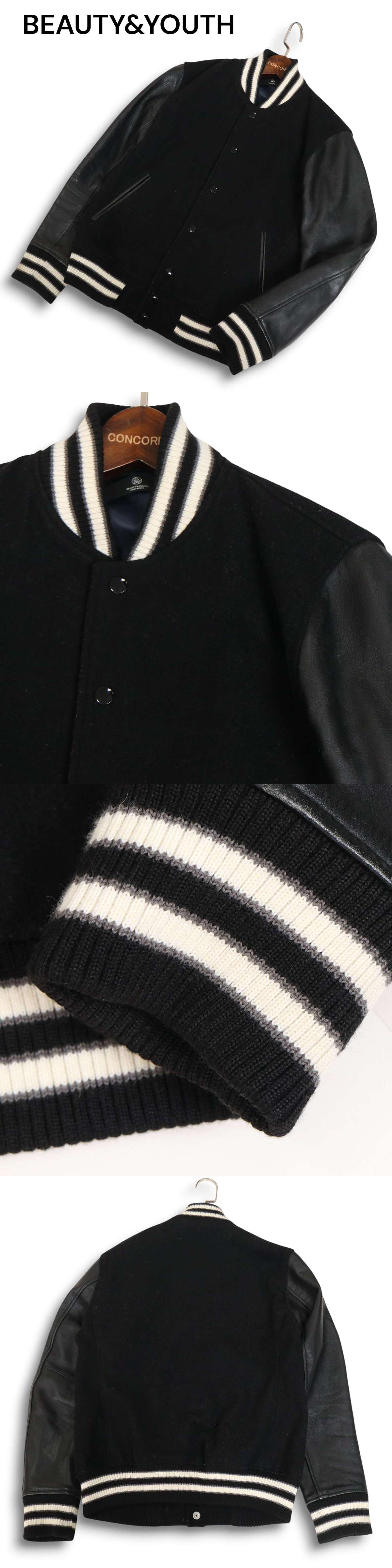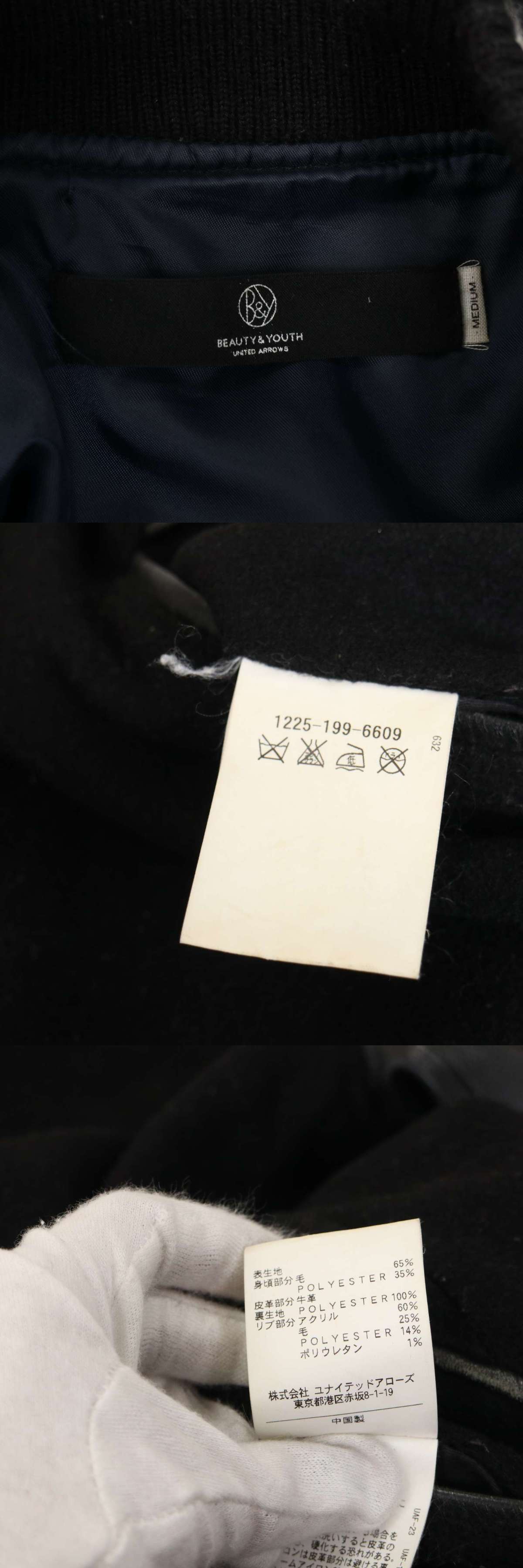 BEAUTY&YOUTH ユナイテッドアローズ 袖革★ 牛革 カウ レザー × ウール スタジャン ジャケット Sz.M メンズ