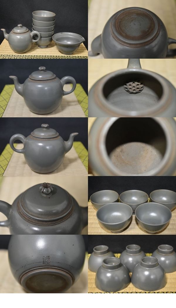 【光成】煎茶道具・青備前「森造・煎茶器一式」無傷・全印有