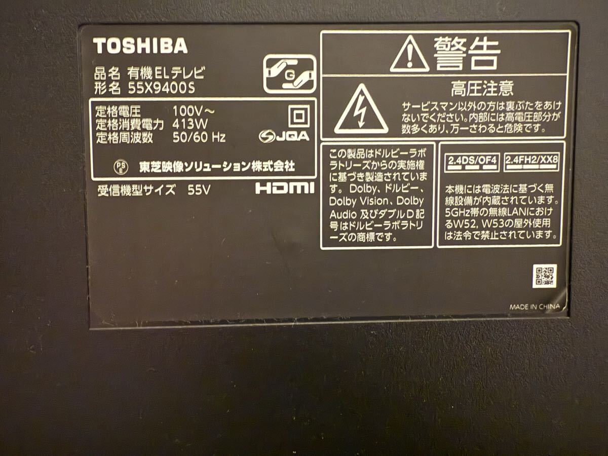 【極美品】TOSHIBA 東芝 4K 有機ELテレビ REGZA 55X9400S 2022年製 レグザ 55インチ 55V型 タイムシフトマシン 4Kチューナー内蔵