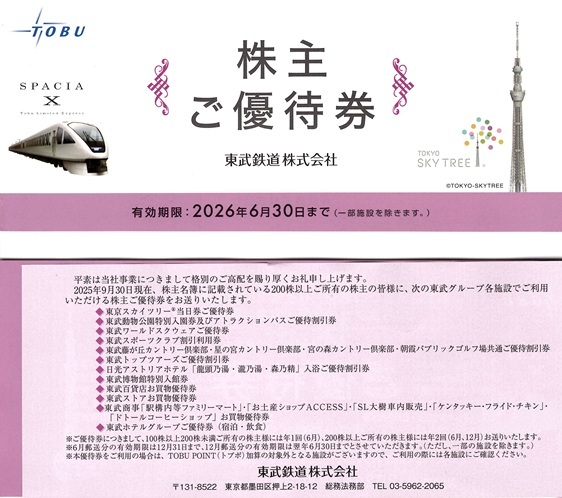 東武鉄道 株主優待券 冊子(東武動物公園・東武ストア・東京スカイツリー他)