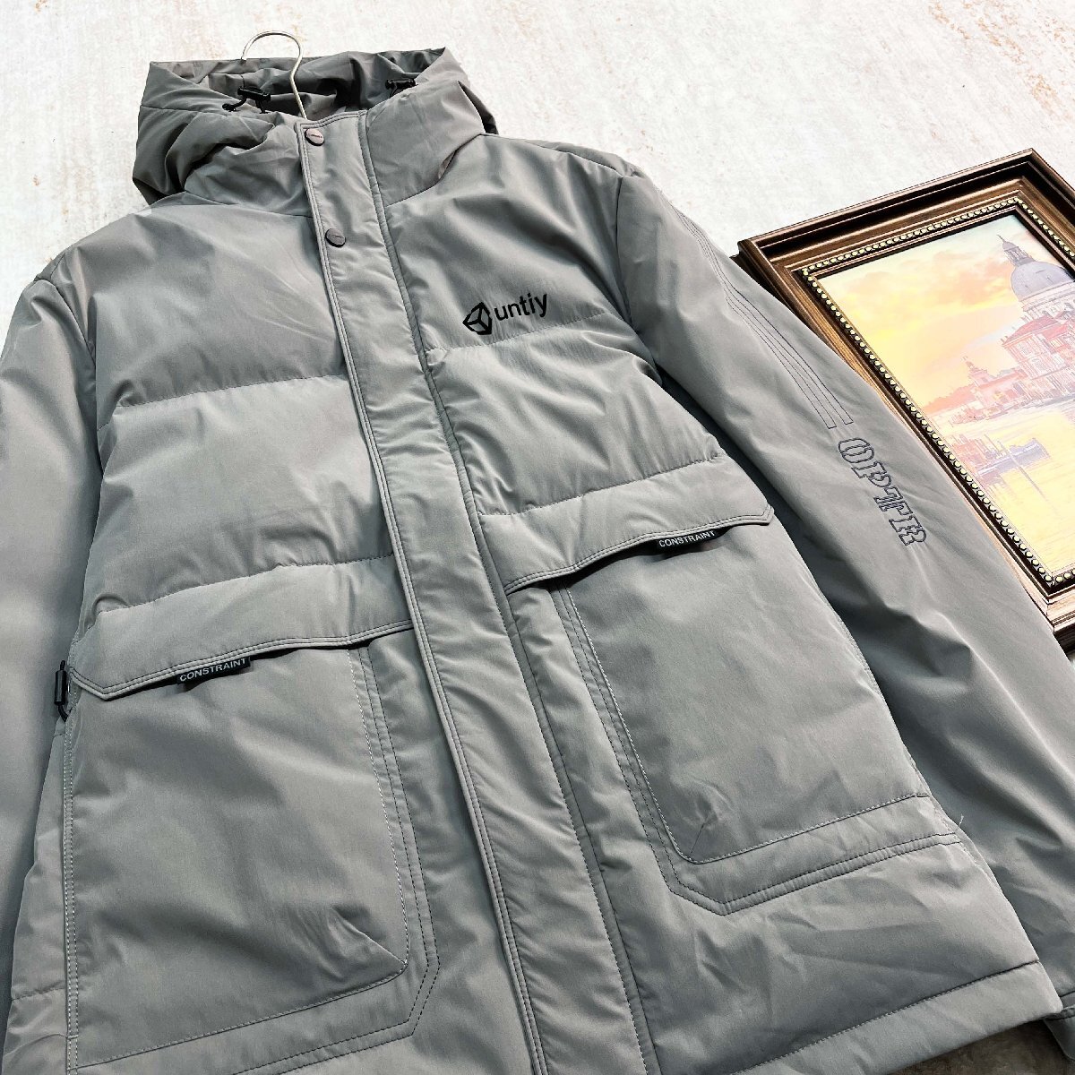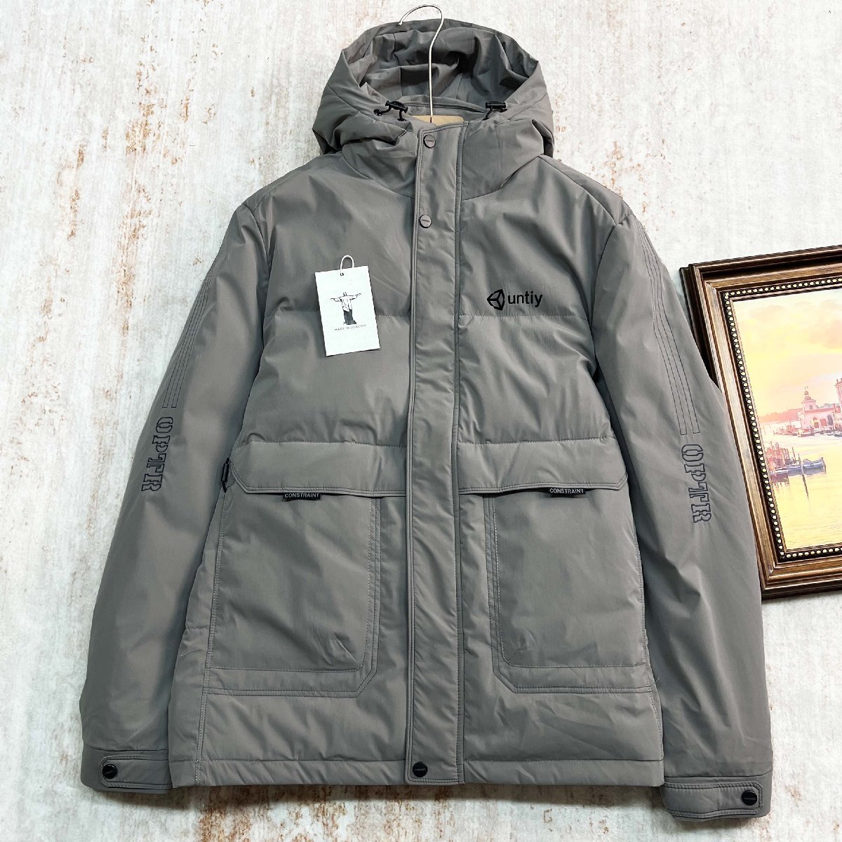 一枚限定 ダウンジャケット ロンドン製造 ダックダウン90% 防寒 フード付き シンプル ハイネック マウンテンパーカー アウター 冬服 SIZE:L
