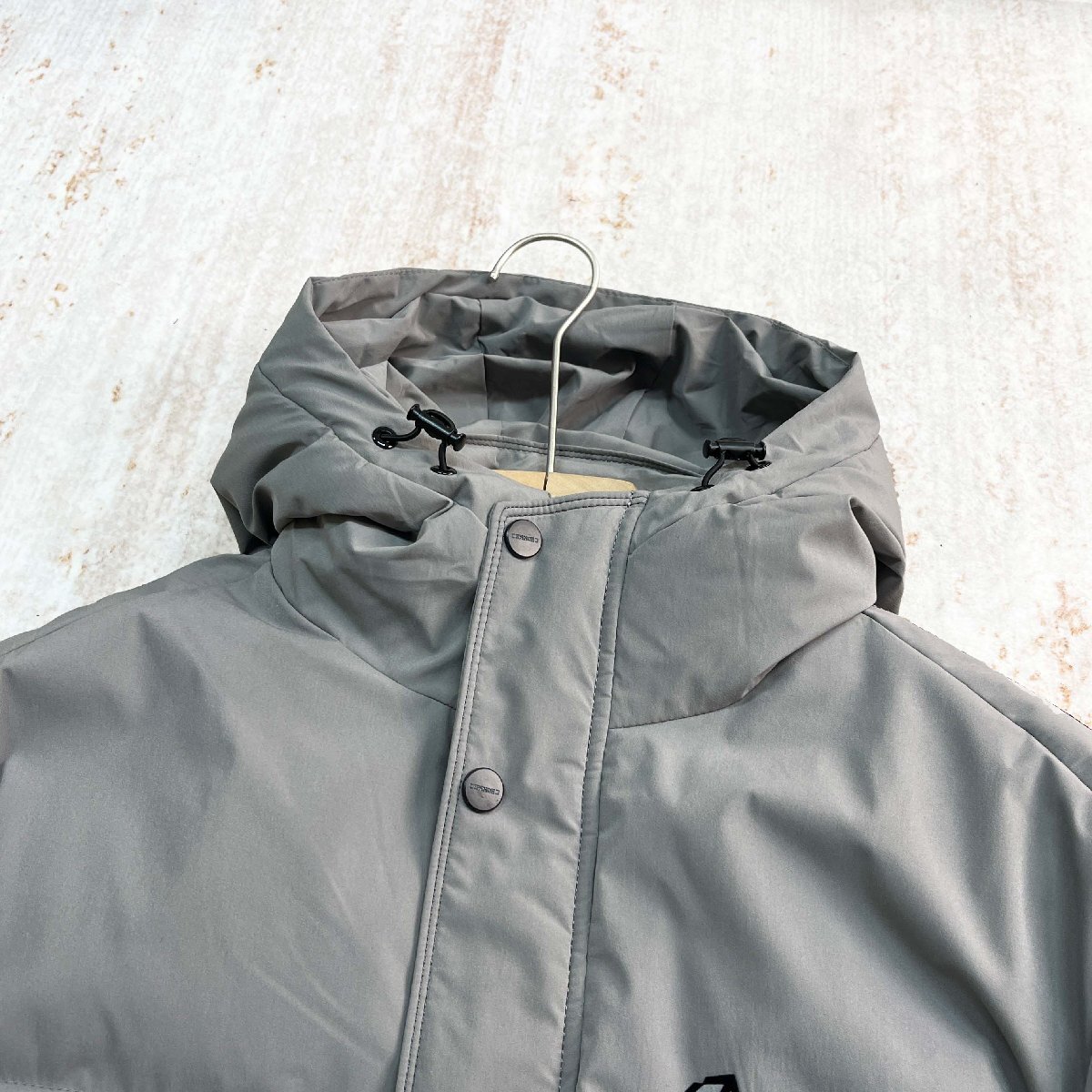 フードにはドローストリングが付いており、フィット感を調整でき、風の強い日でもしっかり頭部を守ります。ハイネック仕様が首元まで暖めてくれるため、マフラーがなくても快適に過ごせます。英字プリントを施し、シンプルながら存在感のあるスタイリッシュな印象に。両サイドにはポケットを配置し、スマホや貴重品を安全に収納できます。流行に流されず何年間もご愛用できるよう無駄なデザインは取り除き、トレンドを意識したシンプルな着こなしに。