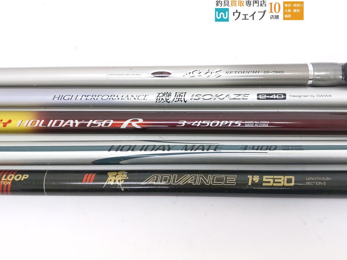 | 商品名 | ダイワ 小継 せとうち 2-36・磯風 2-40、シマノ ホリデー磯 R 3-450PTS・ホリデーメイト 3-400 他 計5点セット |