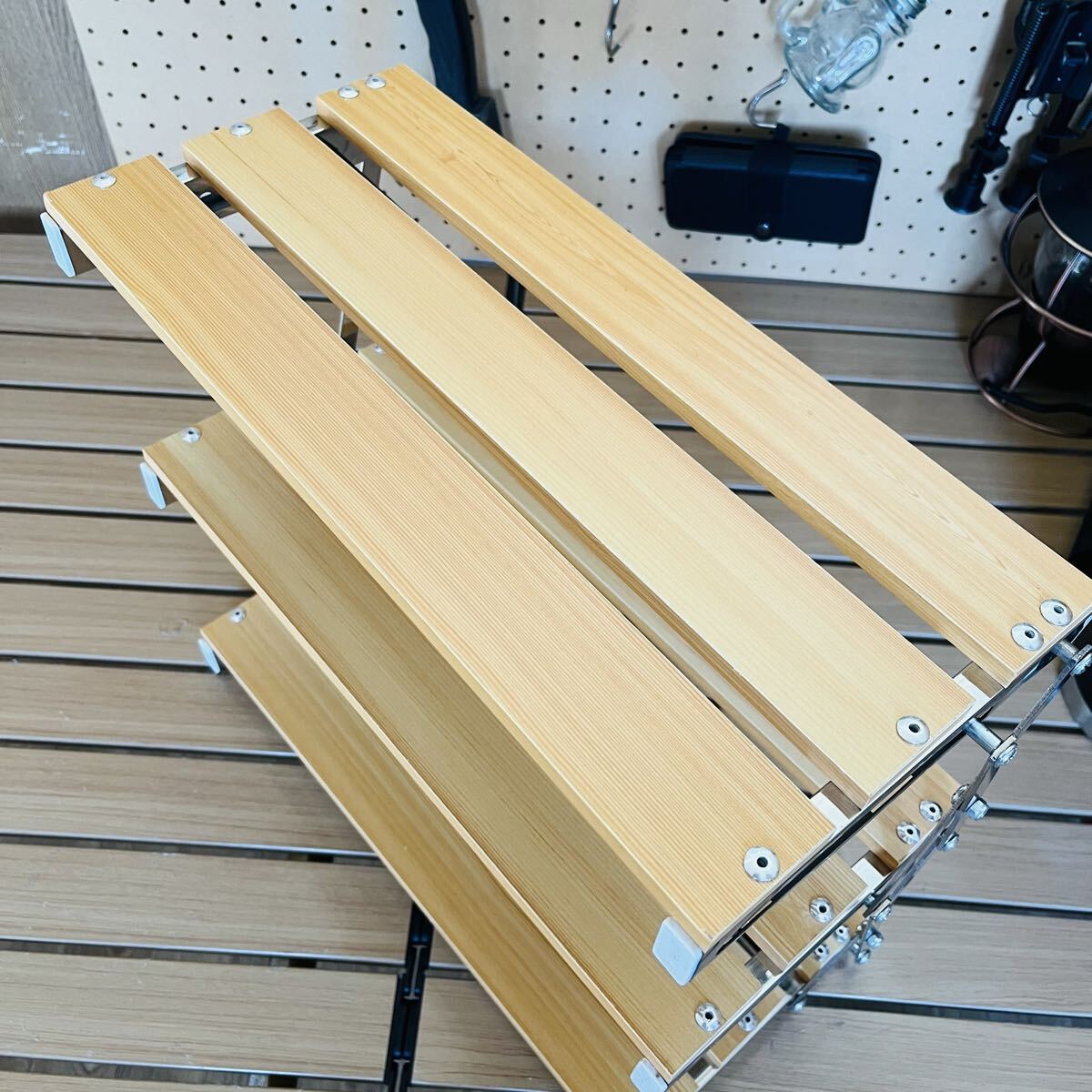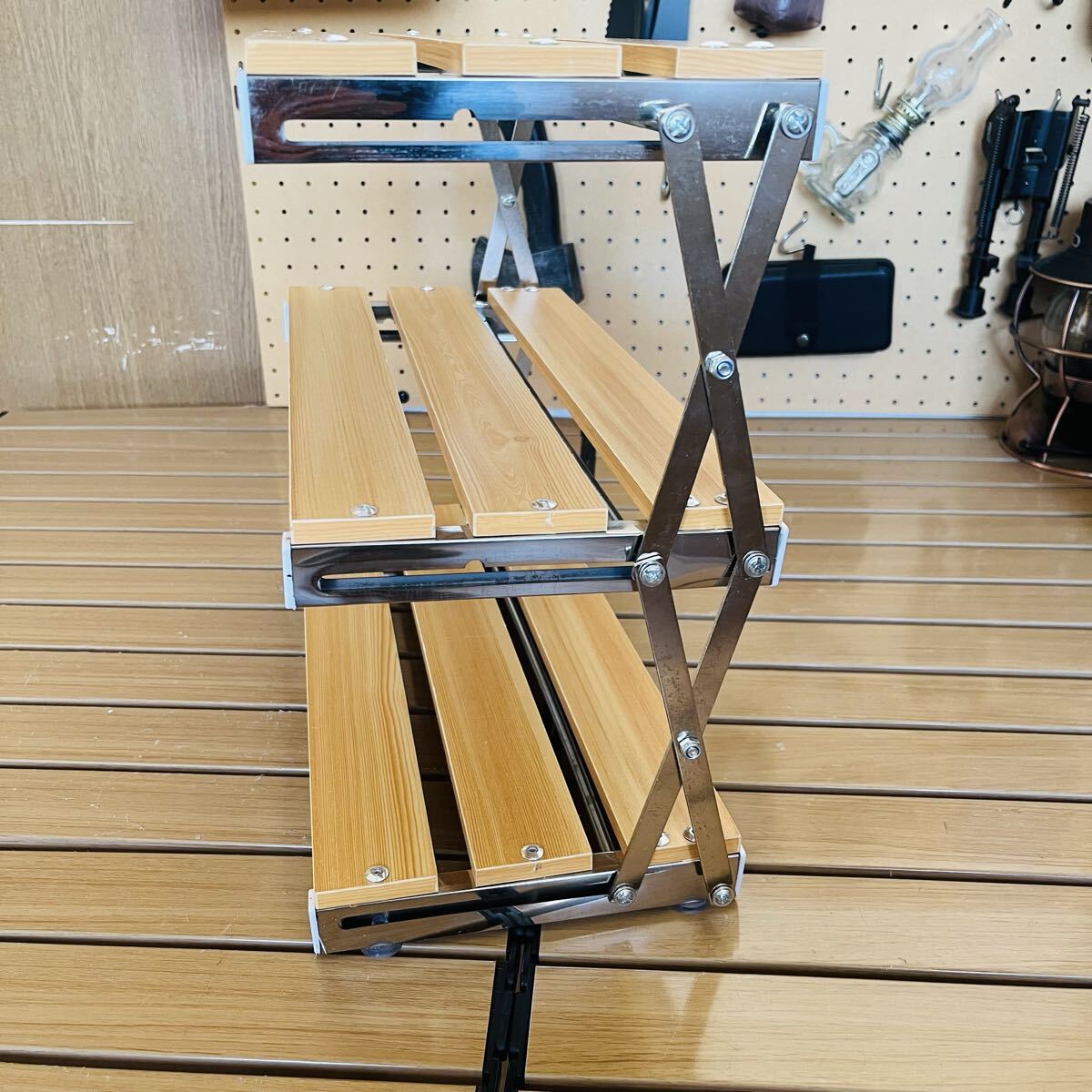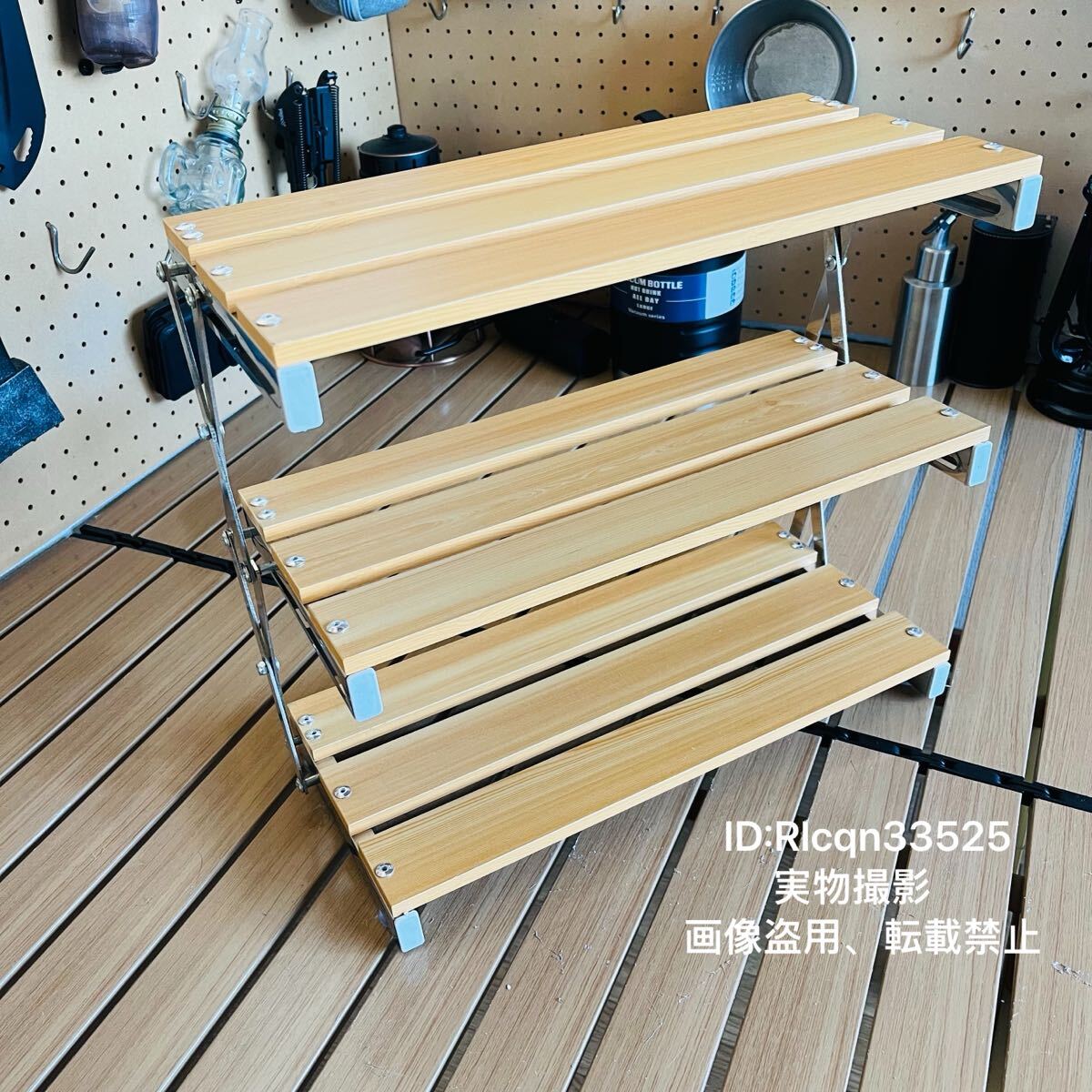 ワイドタイプ キャンプ用 卓上折り畳み置物棚 収納棚 クッカー小物収納ラック 超高品質 木製 アウトドア インテリア 1.8kg 40x18x28-35cm