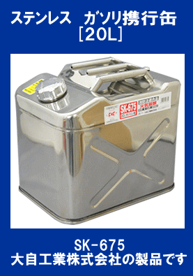 安全性と使いやすさを求めた ステンレス・ガソリン携行缶・20L