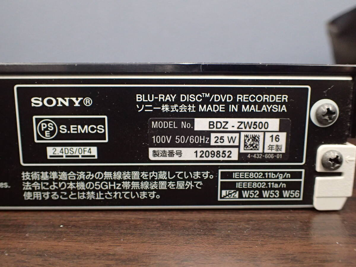 SONY ソニー BDZ-ZW500 16年製 本体のみ ブルーレイディスクレコーダー 外付けHDD対応 無線LAN内蔵モデル 通電確認済 激安1円スタート
