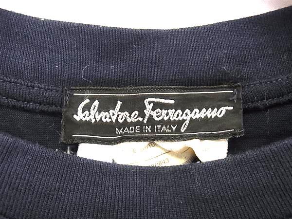 ■美品■ Salvatore Ferragamo フェラガモ コットン100% フィッシュ 魚 半袖 トップス 表記サイズ M 洋服 ネイビー系 DJ9966