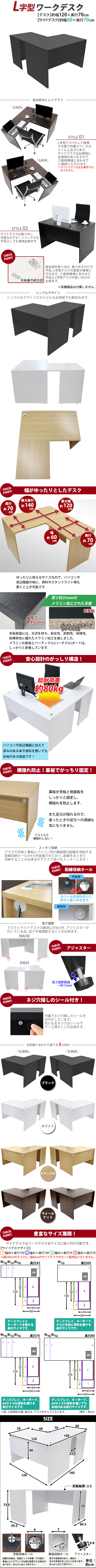 | 商品紹介 | ■作業スペースを広く確保出来る、L字型ワークデスクです。 ■サイドデスクの幅が約60cmのタイプです。 ■会議室や事務所等、オフィス家具として様々なシーンでお使いいただけます。 ■天板には、メラミン加工を施しています。 ■幕板が天板と側面板をがっちりと固定!横揺れを防止します。 ■ネジ穴隠しのシール付き。 ■デスクの天板と幕板に配線収納ホールが2カ所ずつ備わっています。 ■アジャスターで高さの調節が可能です。(高さ調節範囲〜約15mm) ※こちらの商品は、組立て式です。組立てにはプラスドライバーが必要です。お客様でご用意ください。 ※組立図が付属します。 ※サイドデスクの取り付けはデスクの右側専用となります。 ■材質:パーティクル(パーチクル)ボード(メラミン加工)(本体、サイドデスク)、プラスチック(アジャスター、配線収納ホール) ■重量:約47kg(デスク:約31kg、サイドデスク:約16kg) ■総耐荷重:約80kg ●新品商品ではありますが、輸入商品の為、多少の擦り傷などがある場合がございますので、ご納得の上ご購入下さいませ。 ●ご購入後、お客様ご都合によるご返品、ご返金等は一切お受け致しておりません。 ●本商品を使用した際に発生したトラブル、事故につきまして、当社は一切の責任を負いません。ご使用に関しましては、全て自己責任にてお願い致します。 ※カラーはブラックとなります。 |