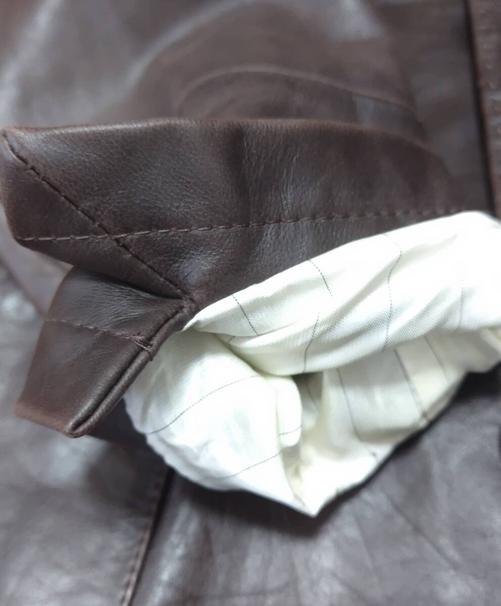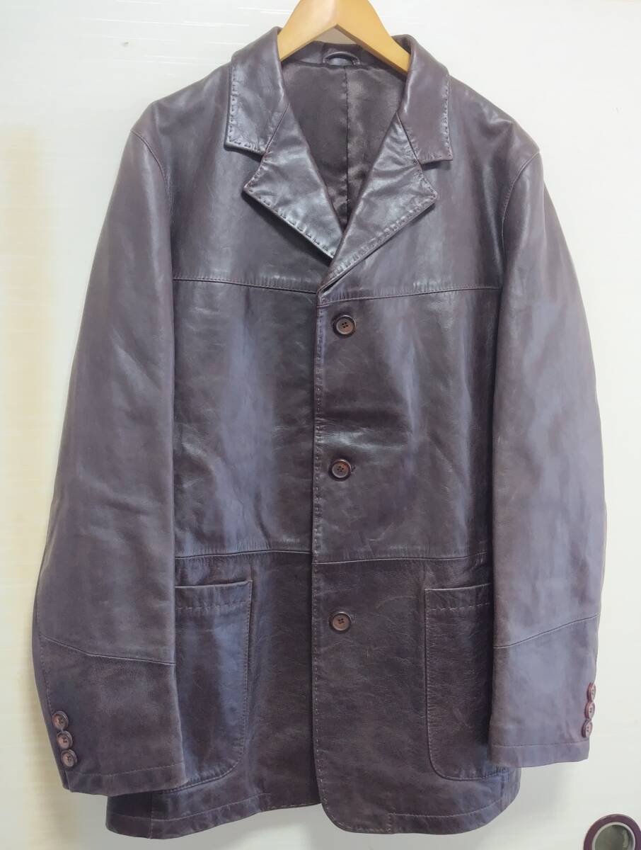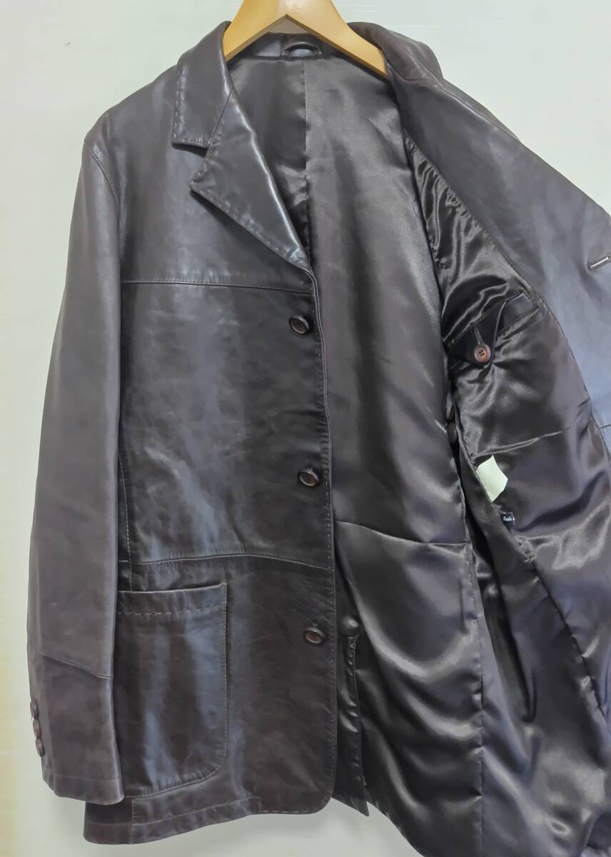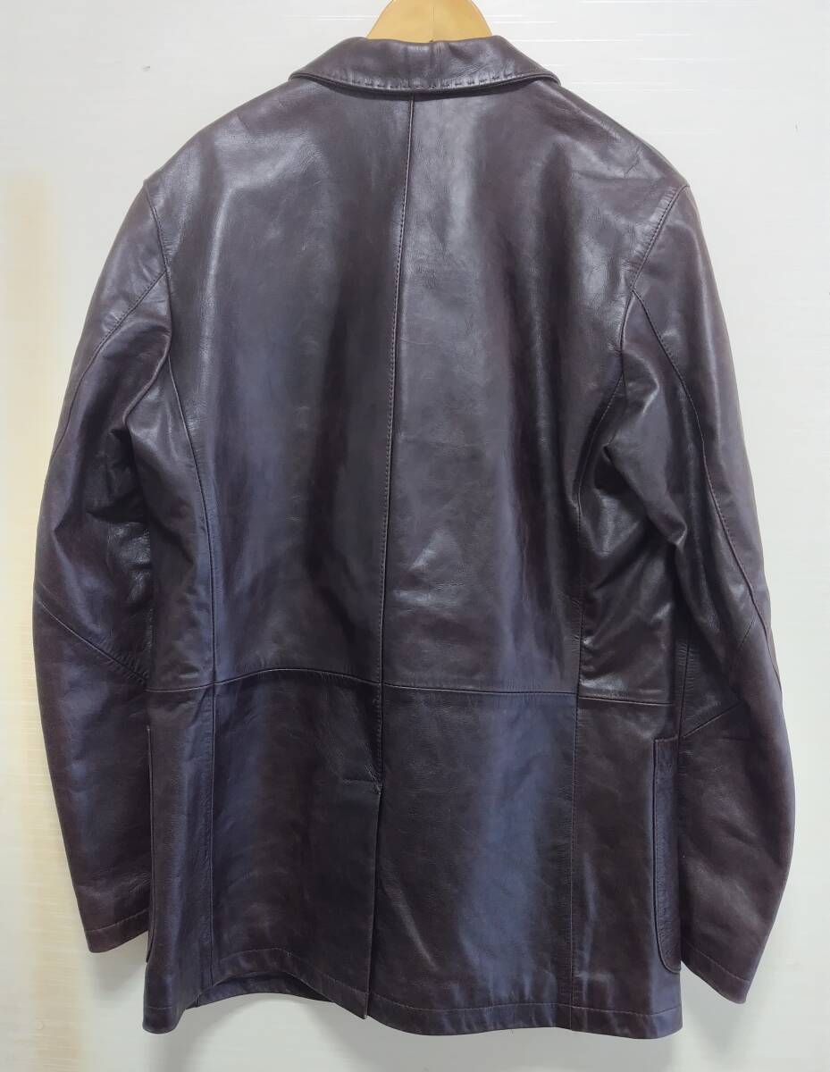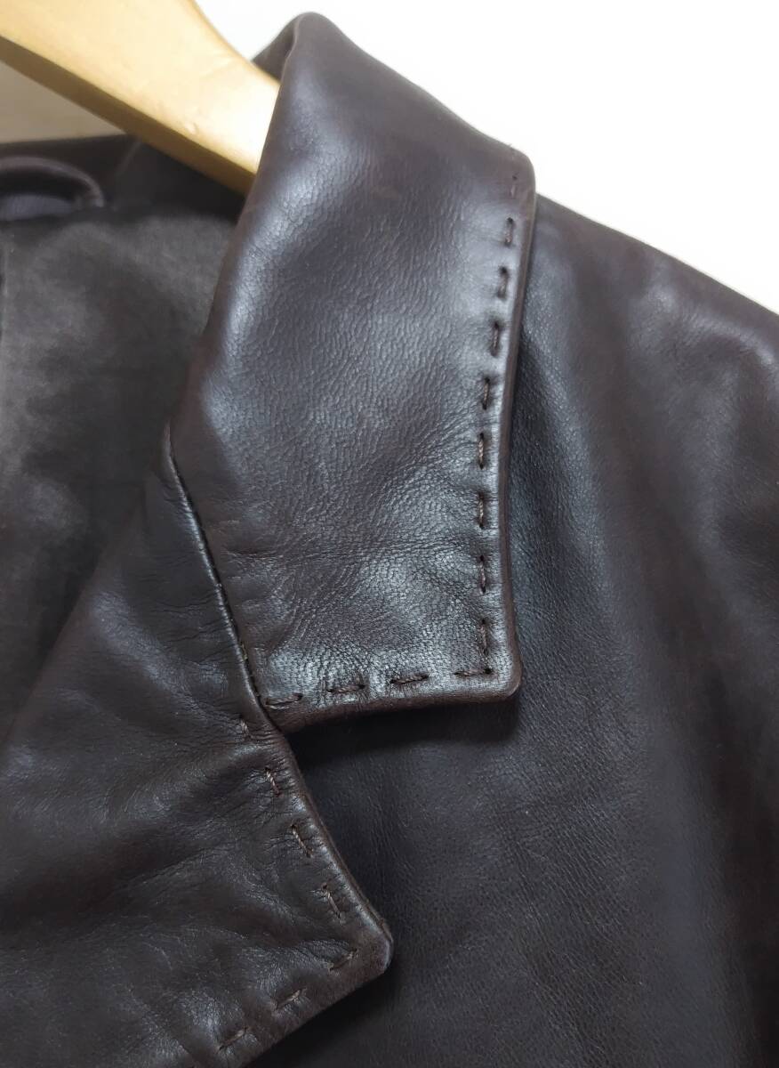 高級 MADE IN ITALY イタリア製 本革 レザー テーラードジャケット ブレザー レザージャケット 手縫いステッチ 茶 46 M メンズ