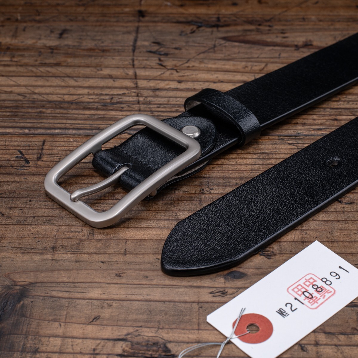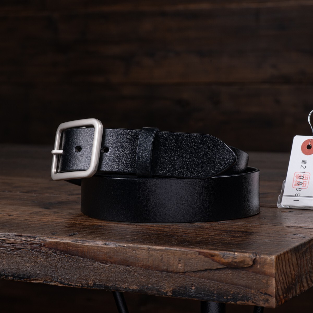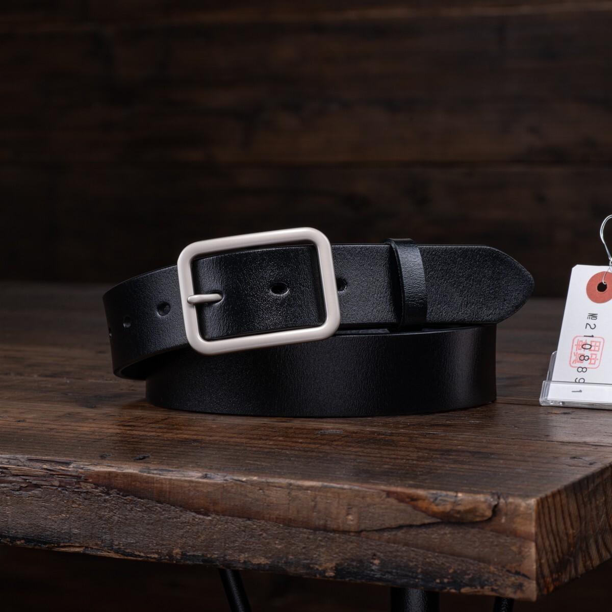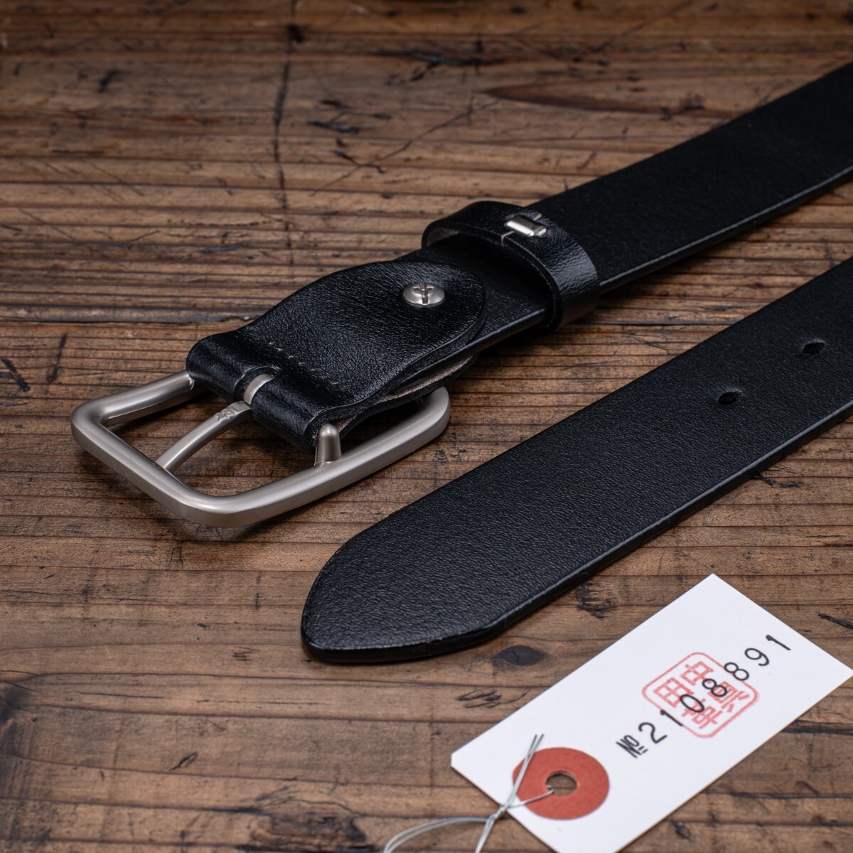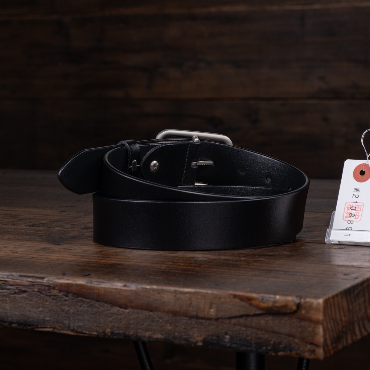 ブラック【牛革】イタリアンレザー シンプル メンズ 本革 ベルト フリーサイズ カジュアル 新品 未使用 送料無料 1円 黒 田中革具