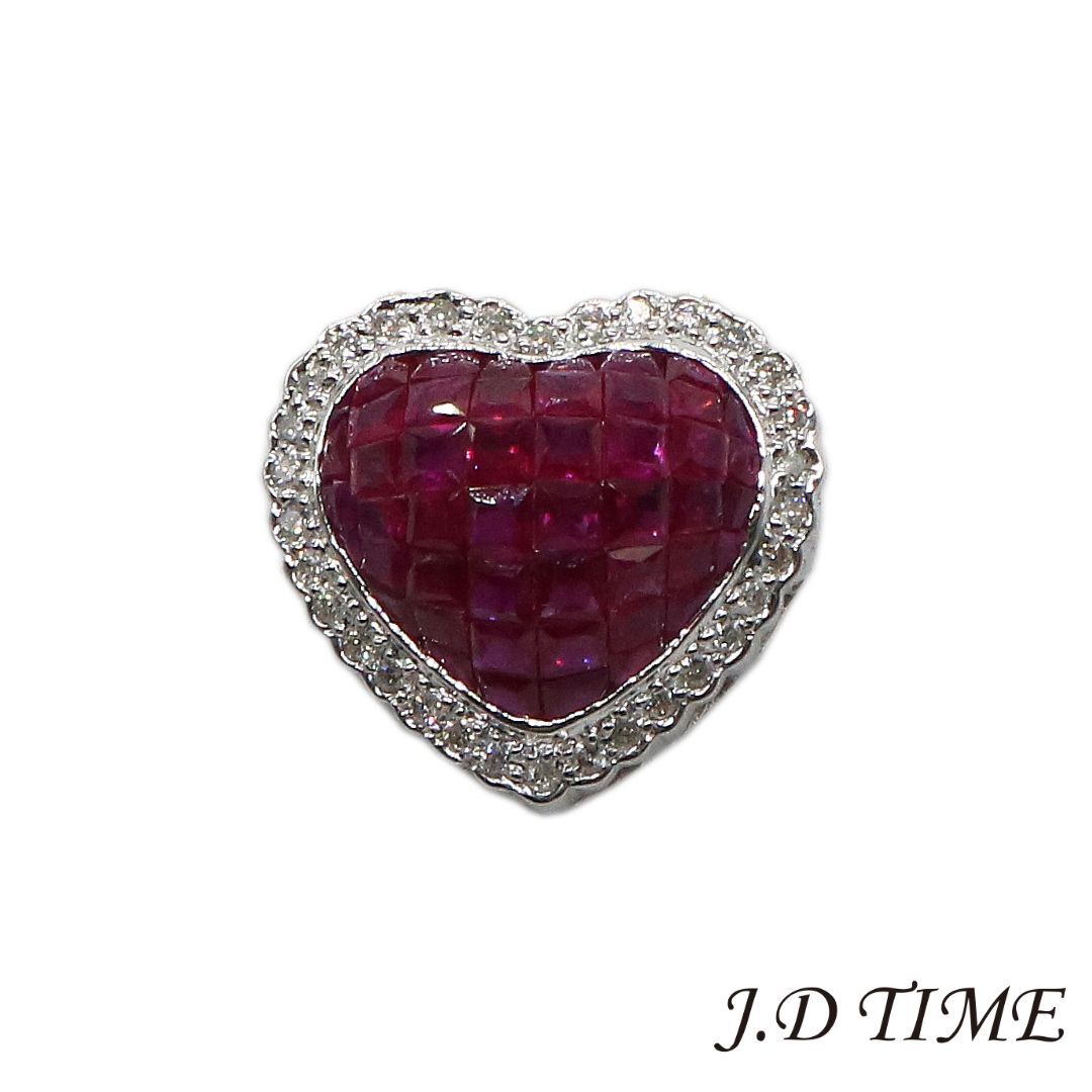 K18WG D0.35ct/R4.40ct ダイヤモンド ミステリールビー ハートペンダントトップ レディース【未使用品】(JD-31440)