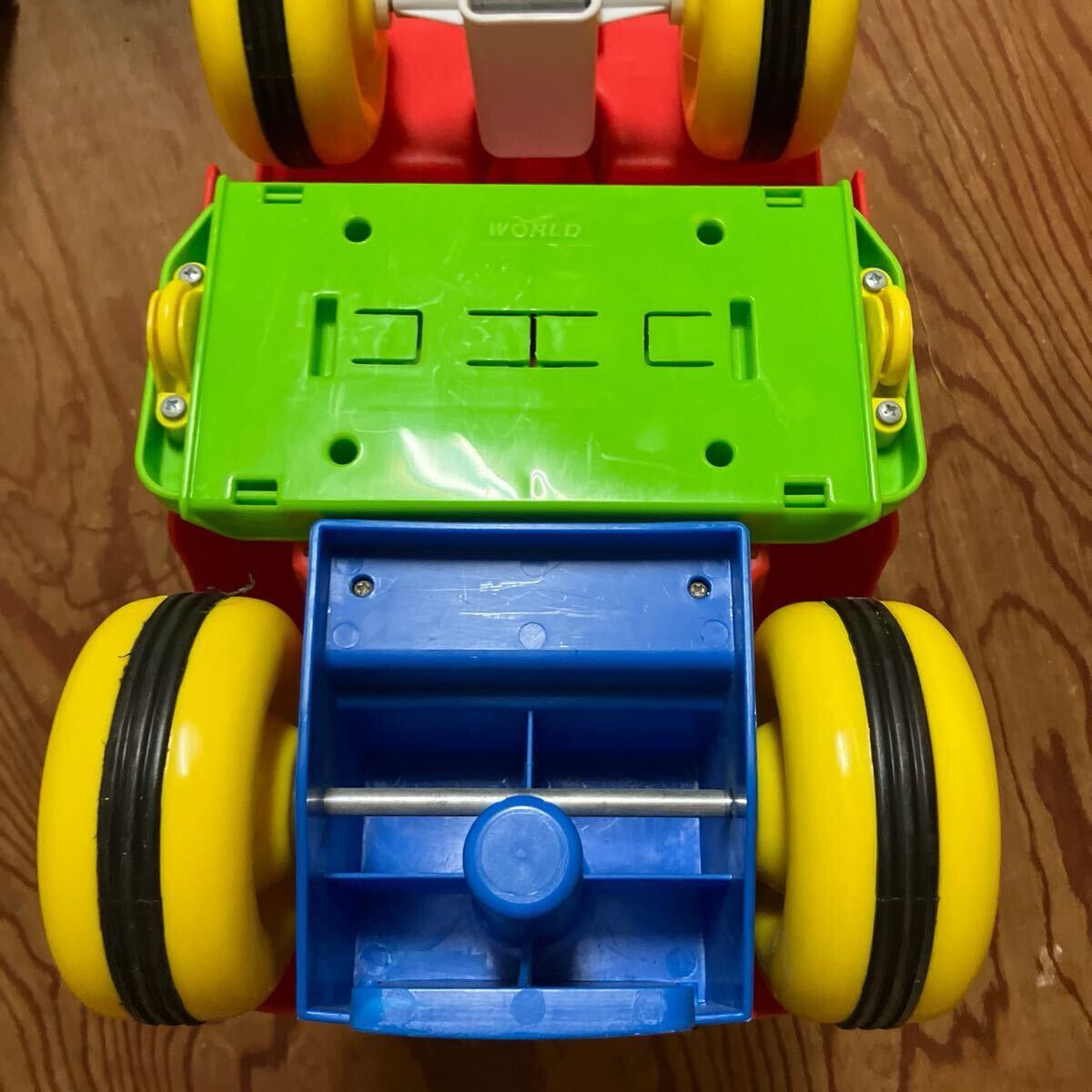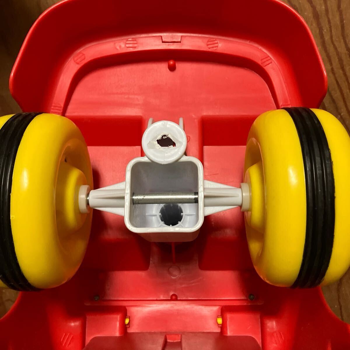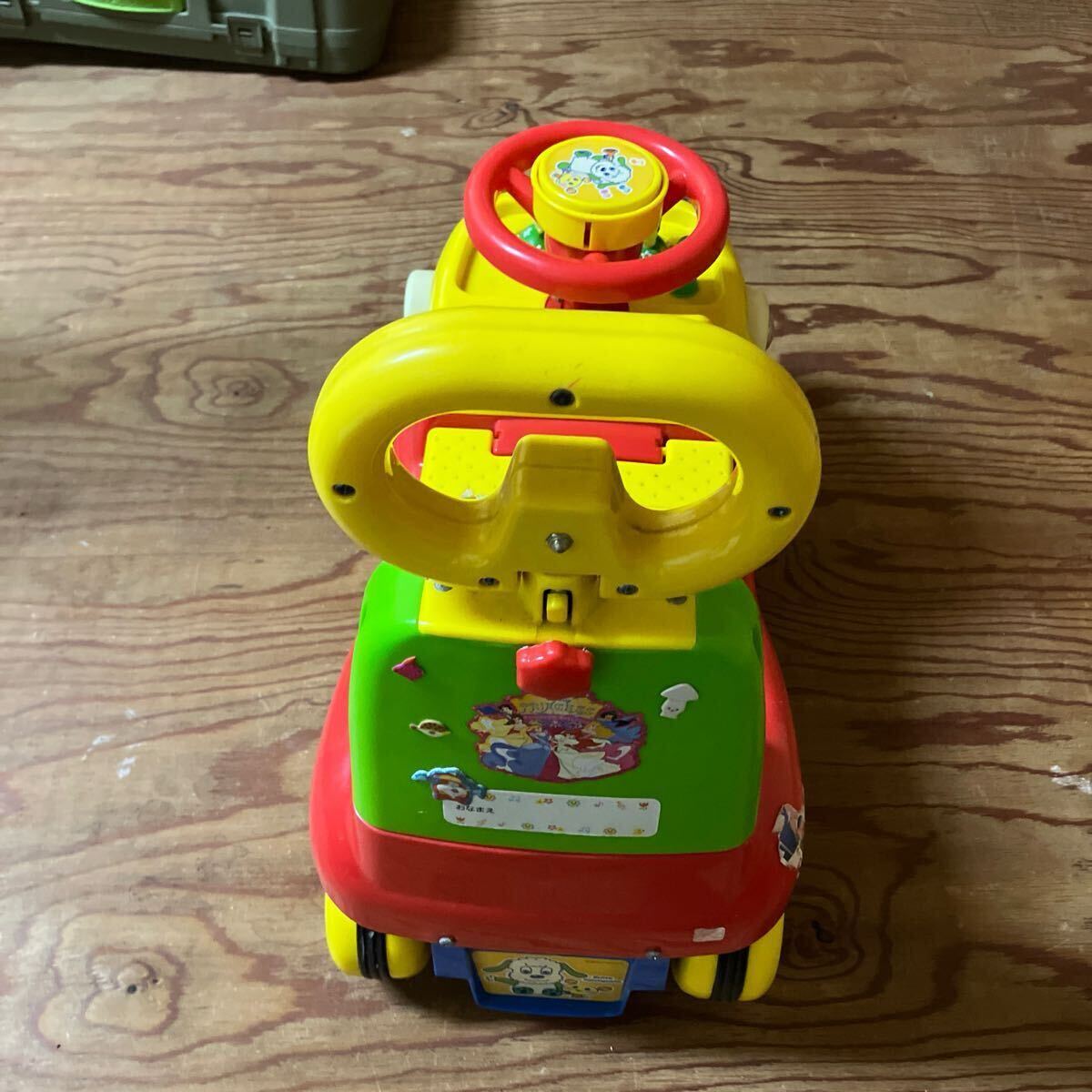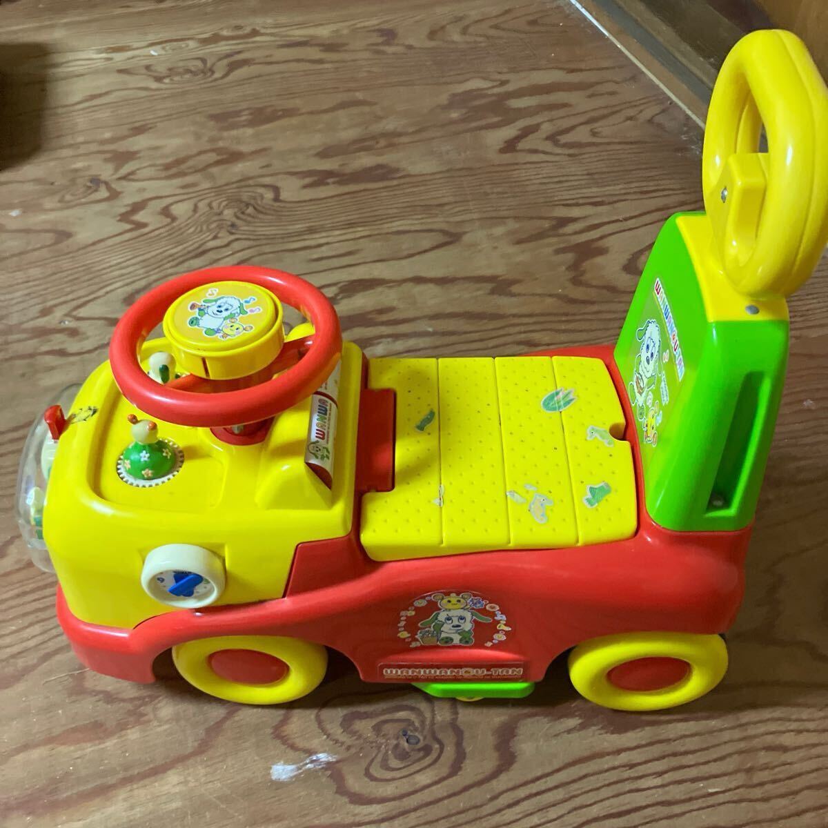この玩具は、押し車と乗用玩具の2つの使い方ができます。