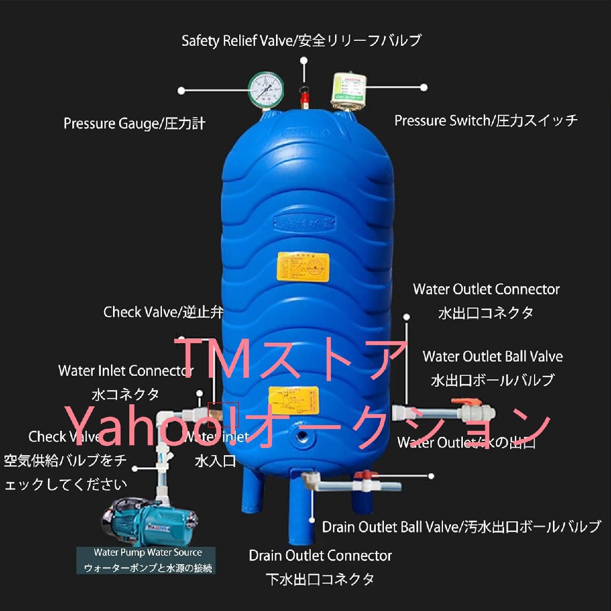 ◆【PE素材】圧力タンクは食品グレードの頑丈なポリエチレン製で、防水性、耐摩耗性、耐圧性、無臭、耐低温および耐高温性があり、(-60℃~60℃)環境で使用でき、水と直接接触して使用でき、人間の食用水基準を満たし、非常に健康的です。