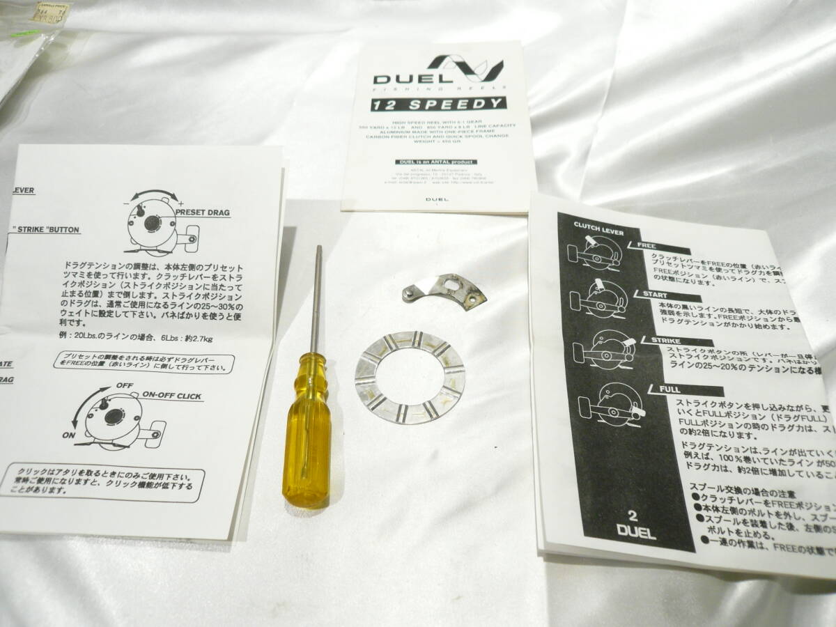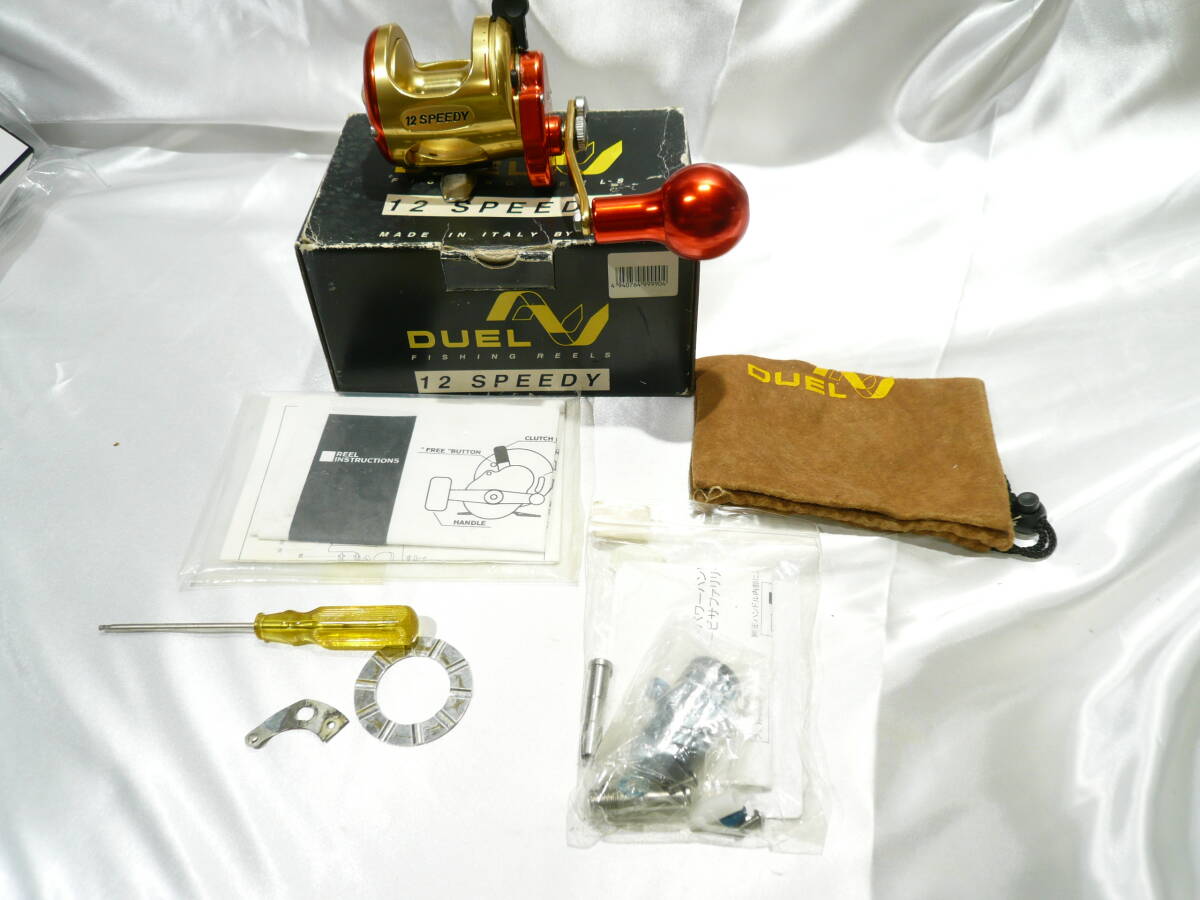 | 商品説明 | DUELのリールです 所どころスレ、キズ等使用感有りますが 全体的には綺麗だと思います ハンドルノブはSANSUIオリジナルの物(リョービリール向け)に 変更されています オリジナルノブもありますが取り付け確認はしておりません 他に交換された物と思われる部品が有ります クリックがOFFになりません ハンドルを回すとローターが回る程度のテストしかしておりません 保存袋、箱には傷みが有ります 一応ジャンクでお願いします |
