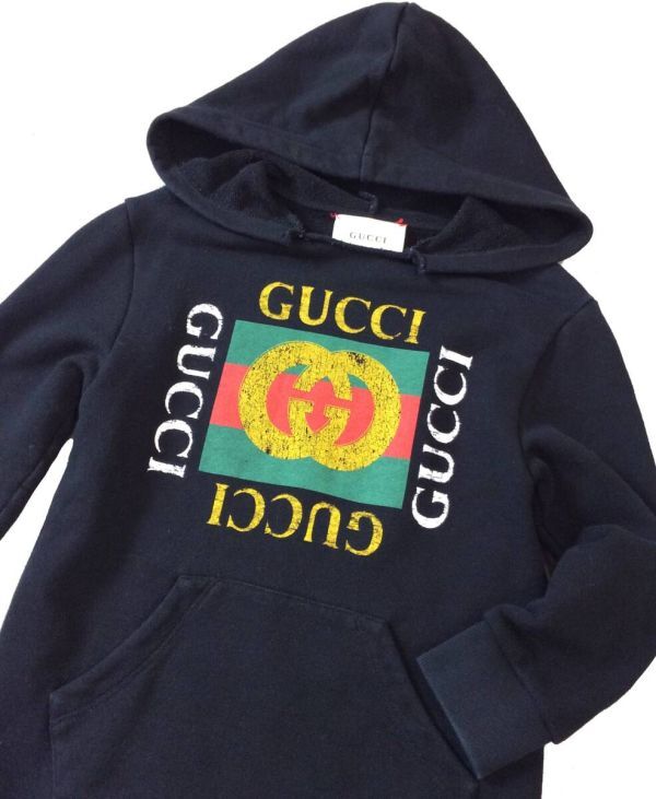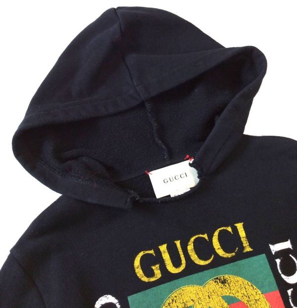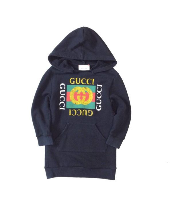GUCCI グッチ ロゴ スウェット パーカー トレーナー フーディー トップス ロング丈 ブラック 黒 イタリア製 コットン キッズ 5