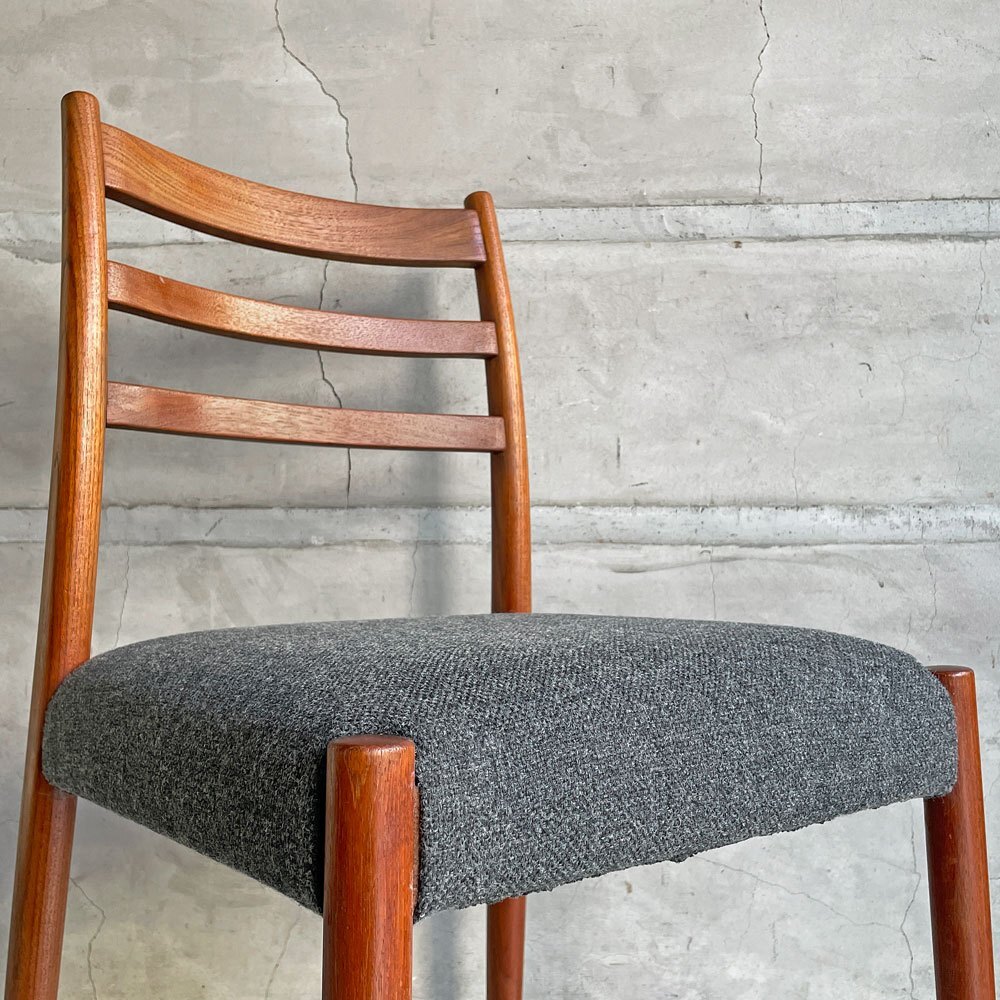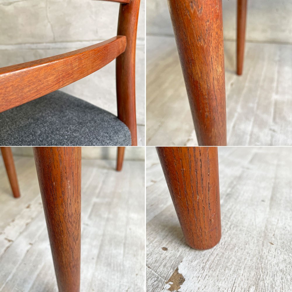 | コメント | 北欧家具の影響が伺えるジャパンビンテージのダイニングチェアです。 現在では希少なチーク材を使用し、詰まった美しい杢目と赤みを帯びた温かみのある色合いが上品さを演出。 抜け感のある背もたれやテーパードの脚部が軽やかさを演出し、シンプルながら野暮ったさを感じさせない美しいシルエットに。 日本の家具だけあって、日本人の体型によく合ったサイズ感も魅力的です。 座面のファブリックとウレタンは新たに交換済み。グレーの生地には張り替えられており、チーク材との色合いと相性が良く、全体を優しく落ち着いた雰囲気にまとめ上げています。 ウレタンは適度な弾力と沈み込みによって、長時間座っても疲れにくくストレスを感じさせない座り心地です。 北欧テイストの空間は勿論、全体的に落ち着いたカラーリングは幅広いインテリアにも調和してくれます。 木材の風合いが感じられ、幅広いインテリアに馴染んでくれるダイニングチェアです。 ※当ショップは、主にリサイクル品を取り扱っております。基本的にUSED品である事をご理解頂き、ご入札をご検討下さいませ。 |